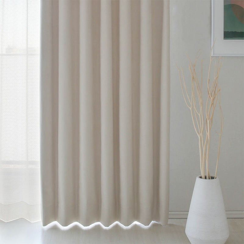 ぜひ一度触れてみてほしい、このなめらかで柔らかなピーチスキン生地。毎日の開け閉めも、なんだか特別な瞬間にしてくれそうな遮光カーテンです。