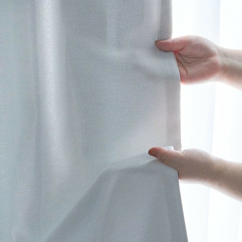 毎日開け閉めするカーテンだからこそ、手触りにもこだわりたい。 表地はわずかな凹凸感が指先に心地よく伝わる質感。裏地はサテンのように滑らかでつるりとした手ざわり。ほどほどよい厚みとハリ感よい厚みとPハリで、使い心地も抜群です。