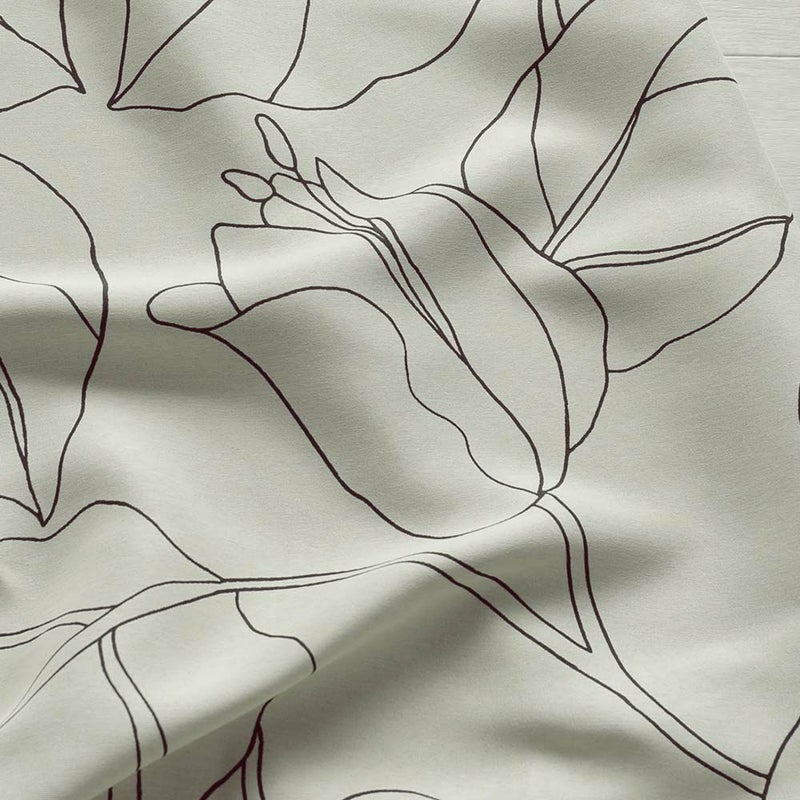 のびやかに描かれた、シンプルな線描きタッチのチューリップ柄。ゆったりとした優雅な雰囲気とチューリップの可愛らしさが魅力です。