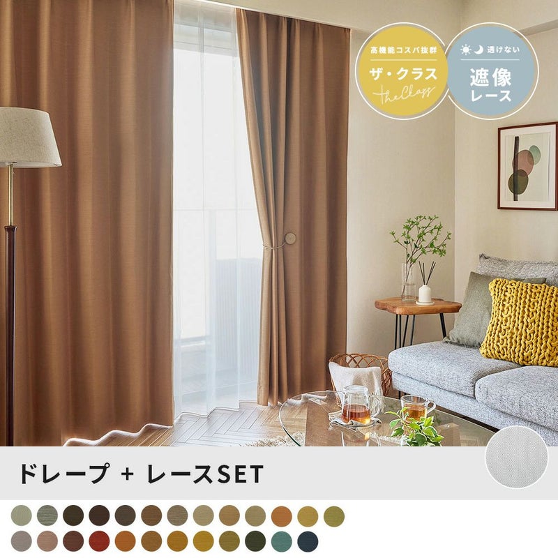 【撮影コーディネート】 タッセル :<ガレット ベージュ>しっかりと光を遮る遮光性にくわえ、遮熱・保温・防炎機能までついた優秀カーテン「ザ・クラス」。無地でありながら風合いも豊かでおしゃれな1枚です。さらに、最短翌日出荷が可能なのでお急ぎの方にもおすすめ。価格もお手頃でコスパも抜群な、当店のイチオシカーテンです。