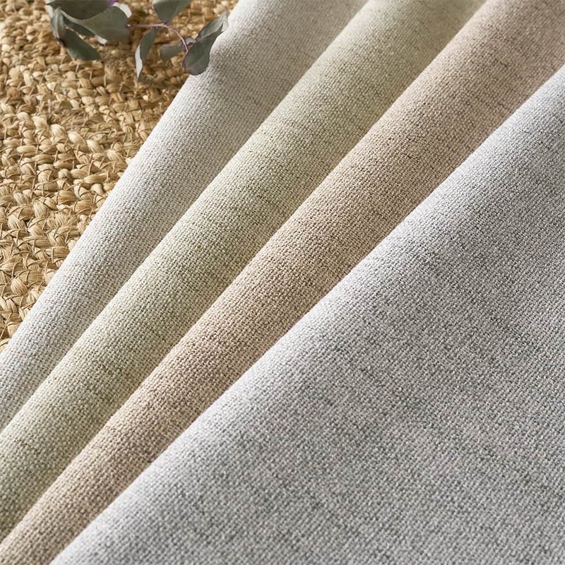 裏面にコーティングを施している分、一般的なドレープカーテンに比べるとやや固さのあるハリ感のある生地です。裏面はしっかりとコーティングされていますが、表面はファブリック感のあるさらりとした風合い。毎日触れるカーテンだからこそ、手触りの心地よさも外せません。