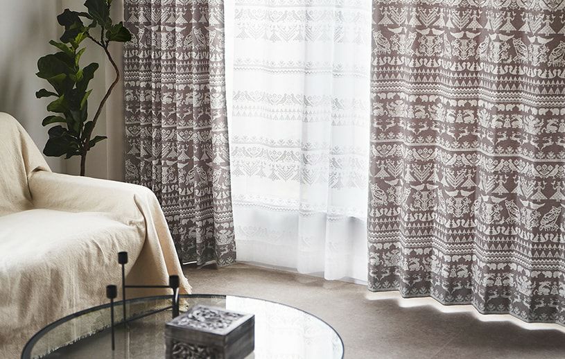 フィンランド出身のデザインユニット「サーナ ヤ オッリ」が描く、北欧デザインカーテン。自然に寄添ったサスティナブルな暮らしを反映したテキスタイルデザインは、世界で注目を集めています。