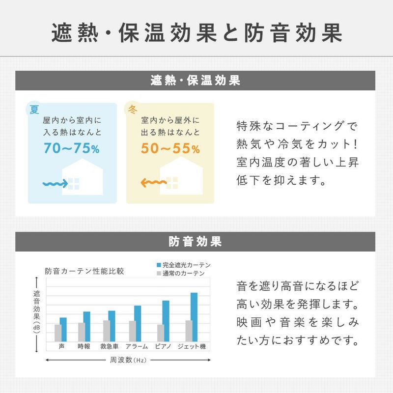 ●ドレープカーテン:完全遮光・形状記憶・遮熱41.1%・保温34.3%・防音・洗濯可 |