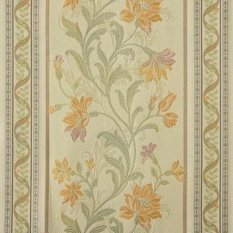 落ち着いた色調のベースにストライプ状のアラベスク模様と華やかなフローラルをジャガードで表現しました。縦のラインが強調された美しいパターンは、天井を高く見せたり、お部屋を広く感じさせたりする効果を与えます。
