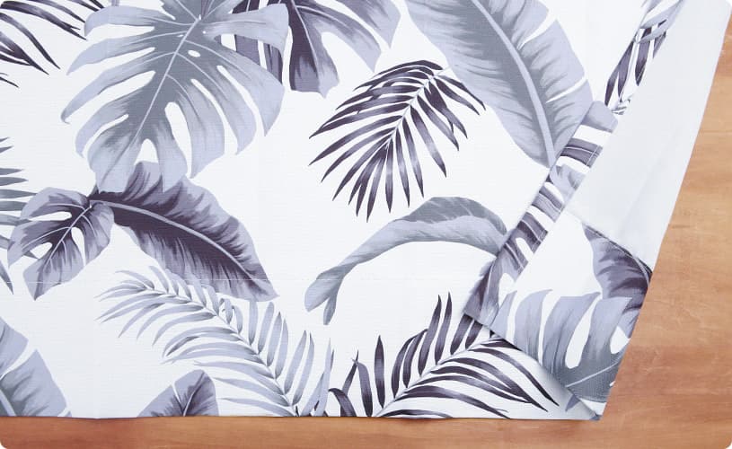 モノトーンのシックなリーフ柄プリントが「大人リラックス」なインテリアを完成させてくれます。