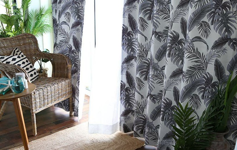 モノトーンのリーフ柄カーテンでヴィンテージハワイアンのお部屋に