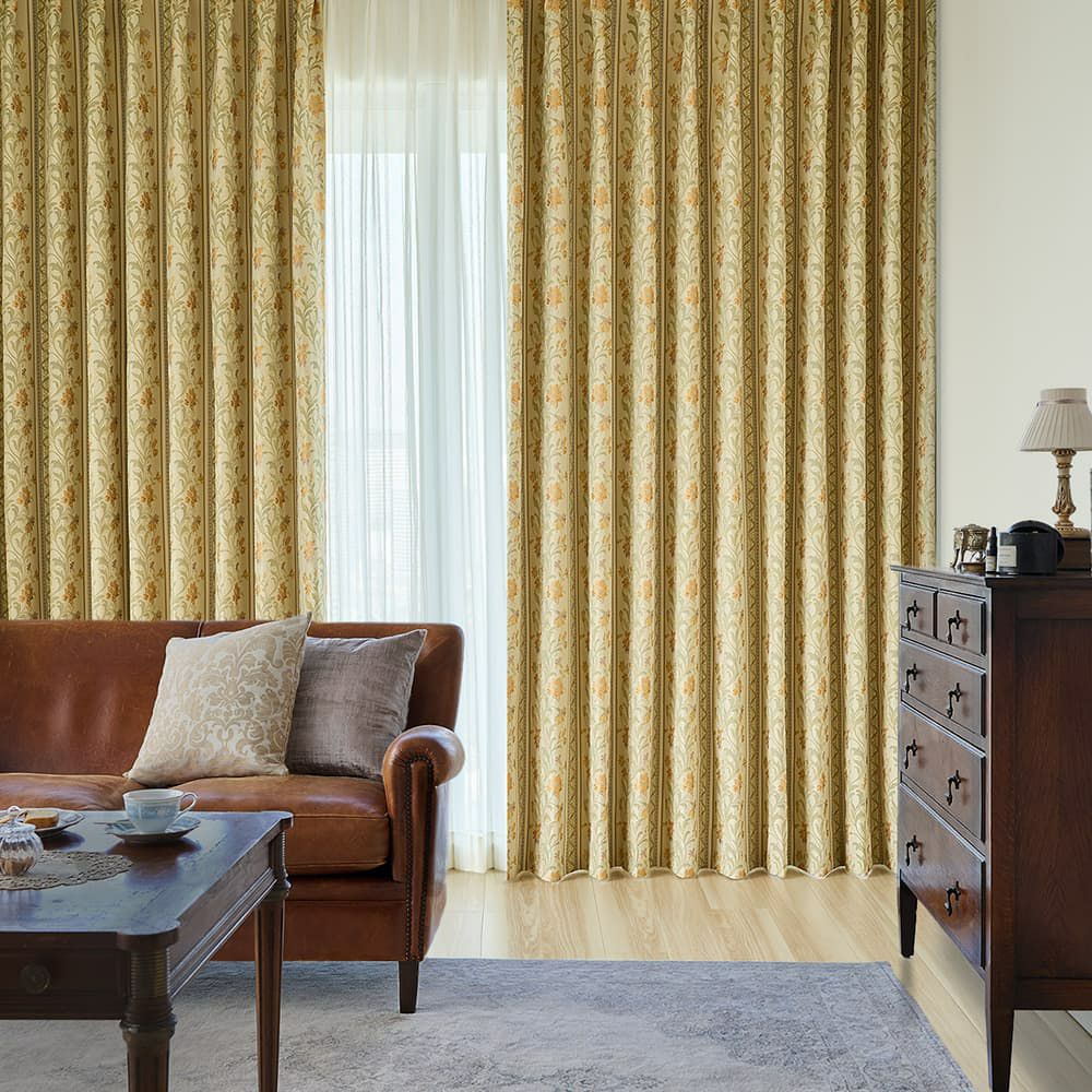 自然に多く見られる緑色は、心を癒し、穏やかな気持ちをもたらしてくれるカラーです。植物の葉(リーフ)や森林を連想させ、目にも優しく、リラックス効果が期待できることから、リビングや寝室におすすめです。ライトグリーン、モスグリーン、深みのあるフォレストグリーンなど、様々な緑系カラーをご用意しています。草花や果物柄などボタニカルな印象のカーテンも多く、お部屋の雰囲気に合わせて、落ち着いた上品な印象から爽やかな印象まで、様々なスタイルを演出することができます。