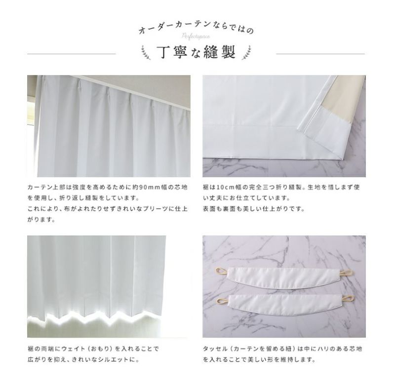完全遮光・遮熱/保温・遮音・ウォッシャブルと充実の機能に加え、最短翌日出荷が可能なので欲しい時にすぐ届く、当店自慢の白い完全遮光オーダーカーテンです。