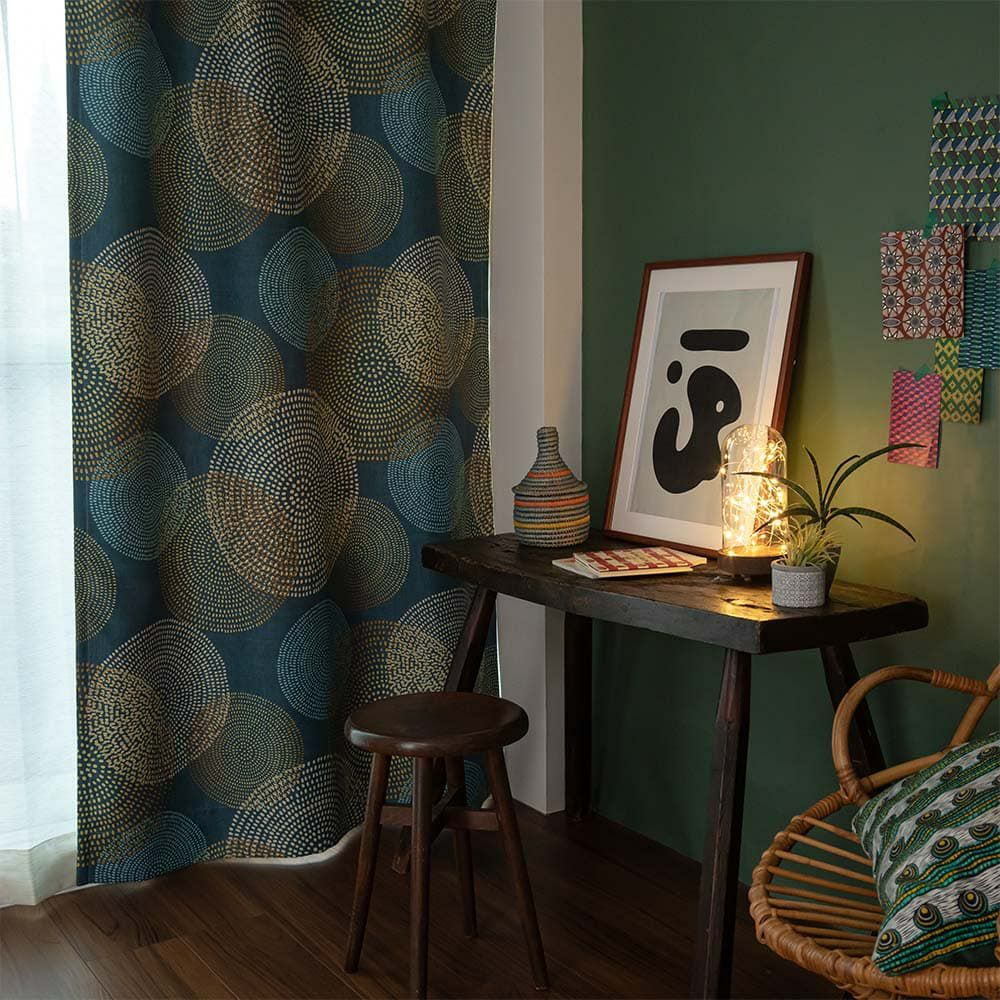 アフリカンバティックなどのアフリカの生地は基本的に綿が多いですが、暮らしをサポートするカーテンとしての役割も果たせるよう、遮光生地にプリントしたカーテンのご用意もございます。