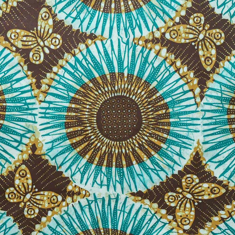 周りにひらりと舞う、ユニークな蝶々がアクセントに。独特なアフリカンカラー2色
