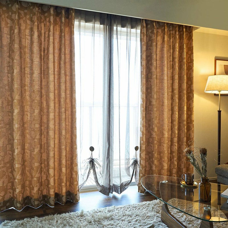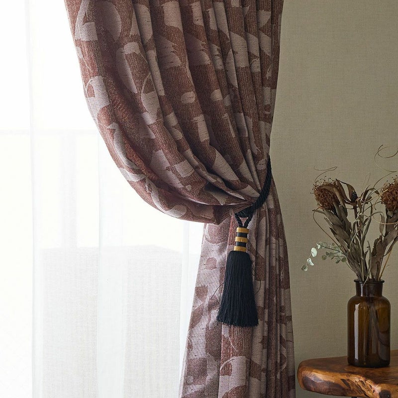【撮影コーディネート】 レースカーテン <デレン ブラウン>タッセル <ガレット ブラウン>国内シェアトップクラスのインテリアブランド「シンコール」から、数量限定の素敵なカーテンが届きました。ゴールドに鈍く輝く高級感のあるアフリカンカーテン。