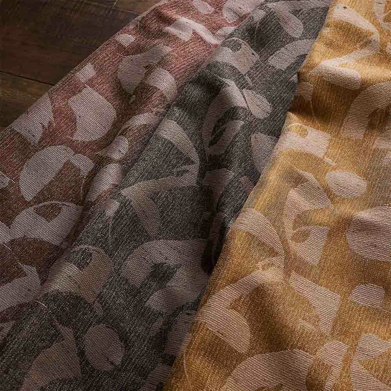 鈍い光沢のある糸で織り上げた、重厚感のあるジャカード織のファブリック。 素朴なアフリカンファブリックの雰囲気をそのまま"織り"で表現しています。 ざっくりとしたムラのあるファブリック感や、ゆがんだようなラフなタッチ。高級感のある素材だからこそ、この温かみのあるタッチがより魅力的に見えるのです。