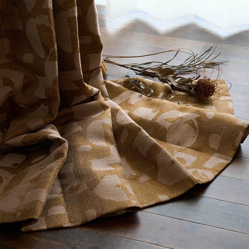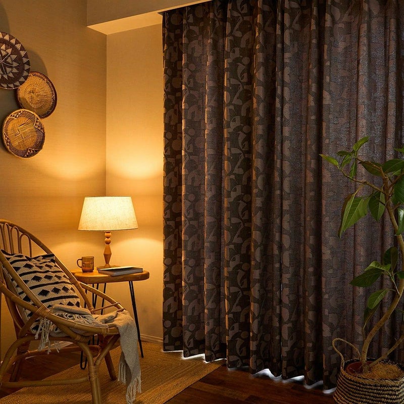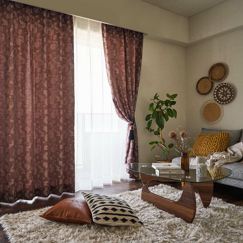 デザイン性の高いファブリックですが、防炎・遮光・ウォッシャブルといった機能性もしっかりと備えています。防炎カーテンは高層マンションにも安心してお使いいただけます。また、ブラウンとワインは遮光3級で、陽射しを遮りつつもほんのりと光を通す、程よい遮光性が魅力です。