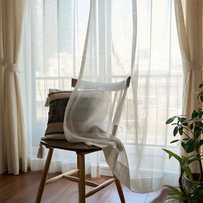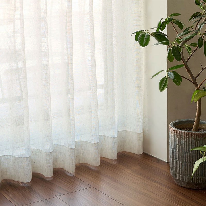 リネン混のナチュラルな質感が魅力のボイルレースカーテンです。 天然素材やナチュラルな柄のドレープカーテンにどんなレースカーテンを合わせよう...?と迷ったら、こちらの<ナッツ>がおすすめ。