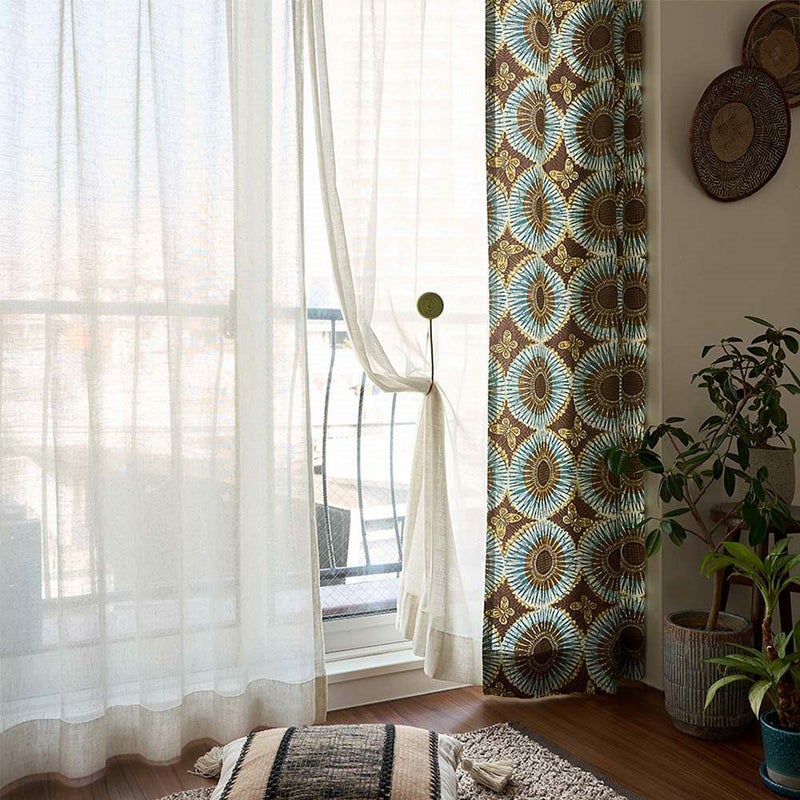 アフリカンや、ナチュラルなインテリアスタイルにぴったりのリネン混レースカーテン<ナッツ>。素敵なドレープカーテンに合わせるレースに迷ったら、ぜひ手に取っていただきたいおすすめです。