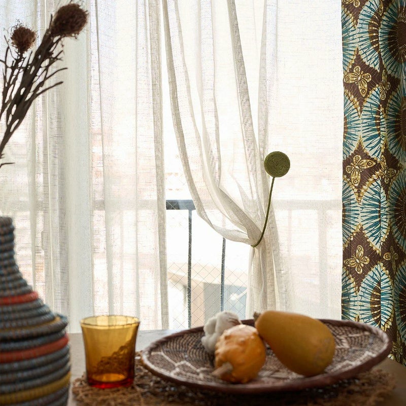 ナチュラルなレースカーテンが、アフリカンインテリアの定番に