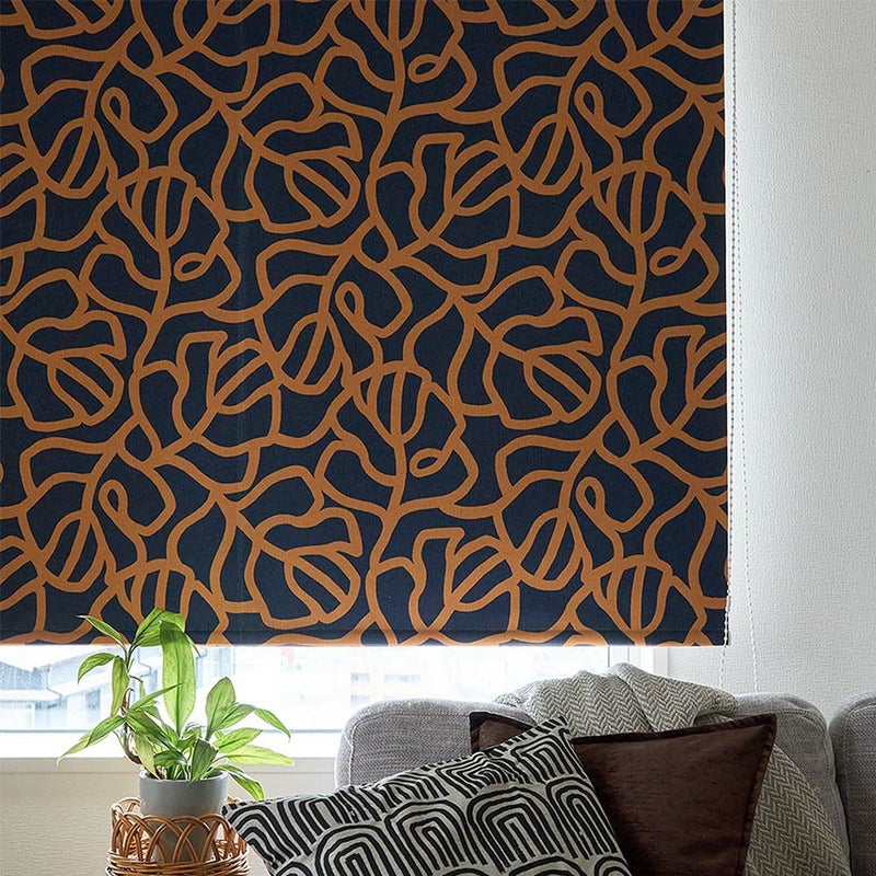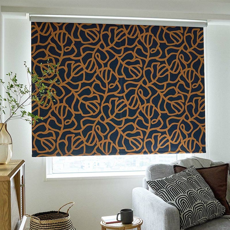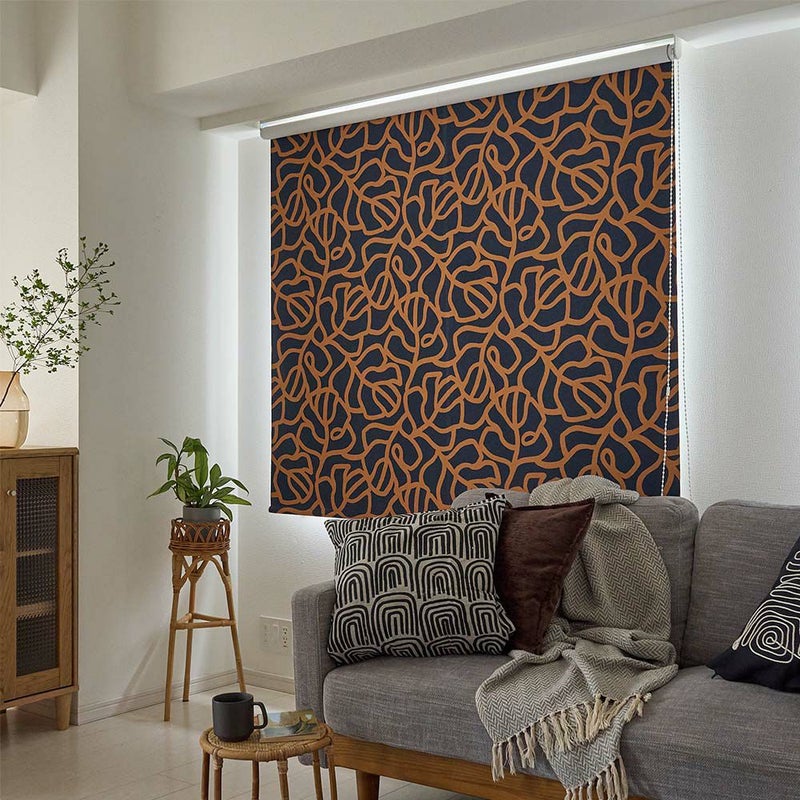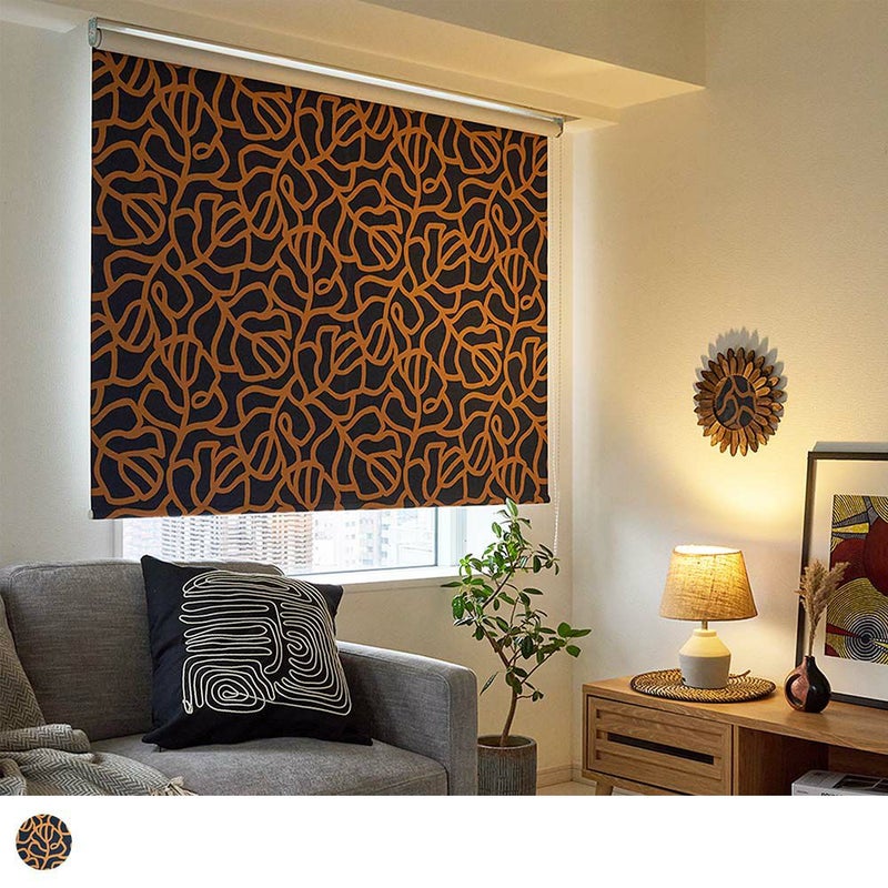 POPアートのような、インパクト大でリッチな"当店オリジナル"のアフリカンロールスクリーンが登場しました! 大きななリーフ柄を力強いタッチで描いたデザインは、モダンながらも、どこかほっこりとしたリラックス感が魅力。
