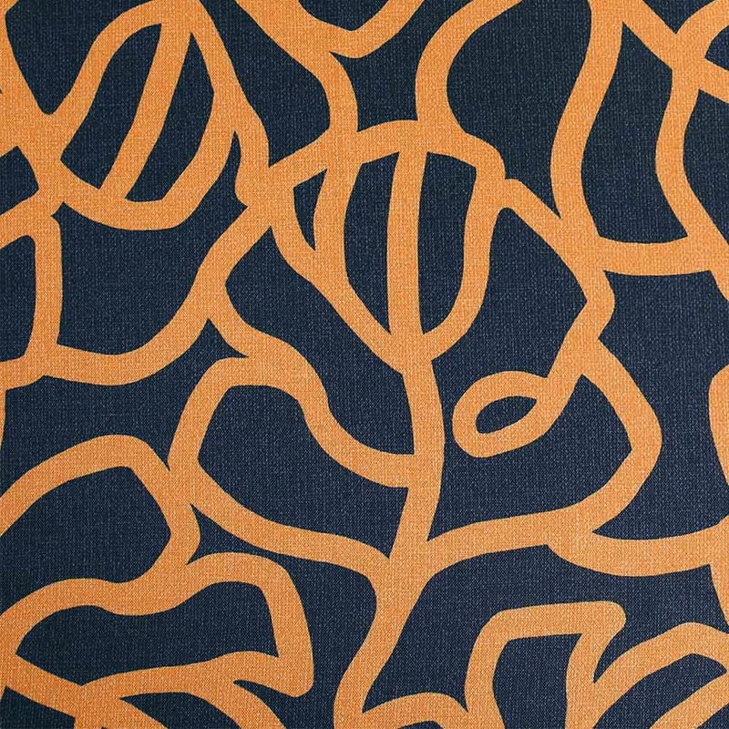 ラフなペイントタッチのリーフ柄をリズミカルに配置したパターン。 愛らしくどこかとぼけたユニークさが魅力です。 エレガントな深いネイビーに描いた、マンダリンオレンジのリーフ柄がぱっと際立って、お部屋をアフリカンアートな空間に変えてくれます。