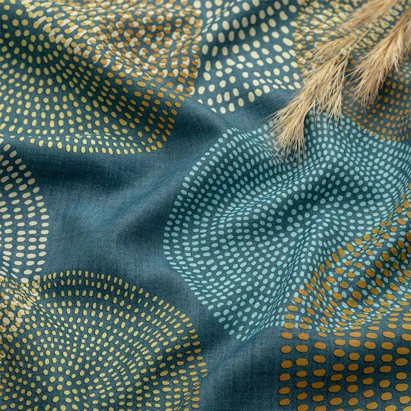ぽたりと落ちた一粒のしずくが水面に広がる、そんな美しい瞬間をイメージした「水紋柄」。アフリカで人気のこのモチーフを、当店オリジナルのデザインで仕上げました。重なり合う水紋が絶妙なバランスで並び、まるでアートのような存在感。お部屋にやさしいアクセントをプラスしたい方にぴったりのカーテンです。