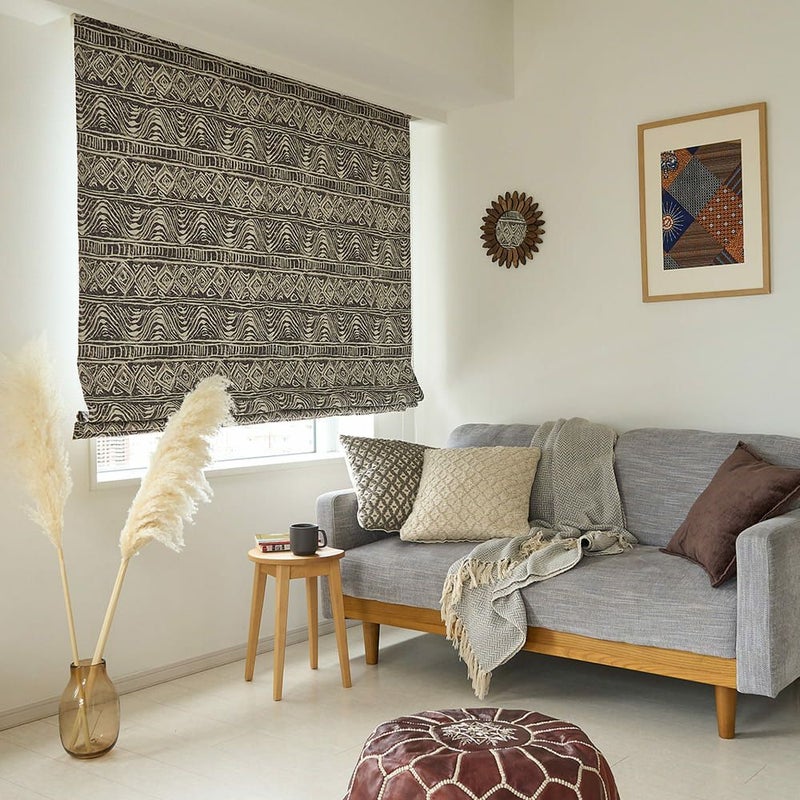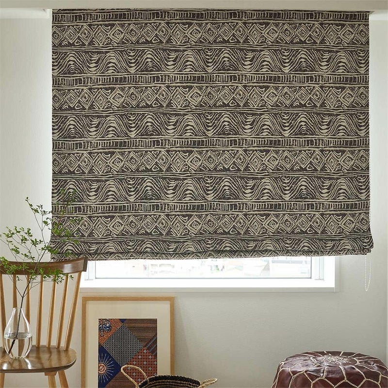 アフリカの伝統的なテキスタイルをモチーフにした、当店オリジナルのデザイン。空間に温もりを与える、愛らしくもどこかとぼけたユニークさが魅力です。 遮光2級で、暮らしに寄り添う機能性もばっちり。