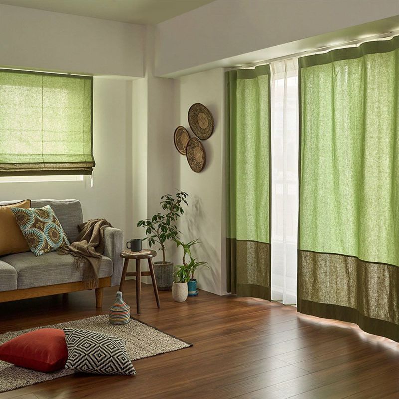 カラー:キウイ【撮影コーディネート】ドレープカーテン <ビコロール キウイ> レースカーテン <トリムレース オリーブ>