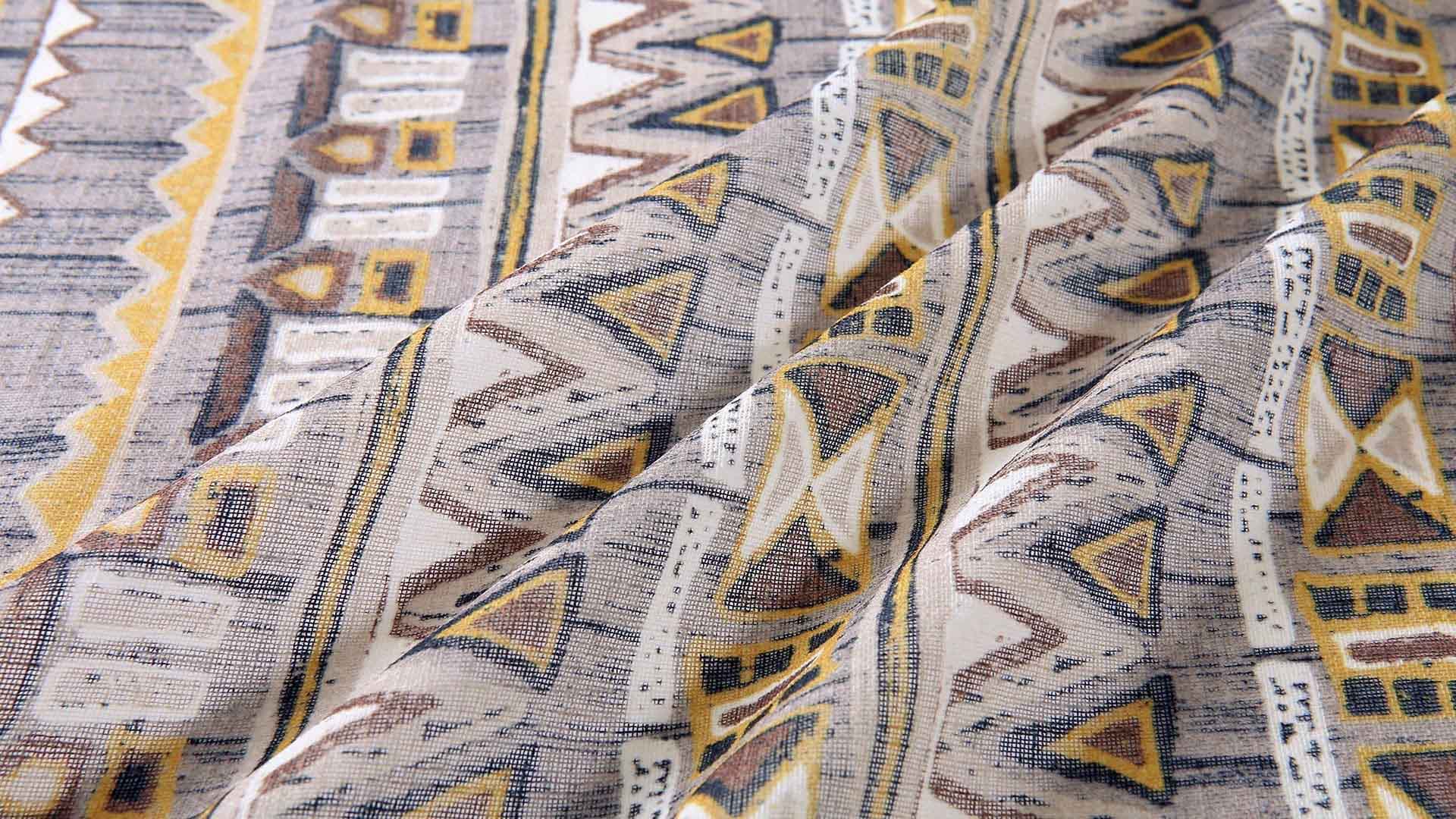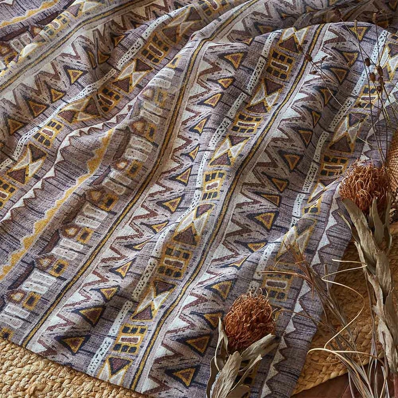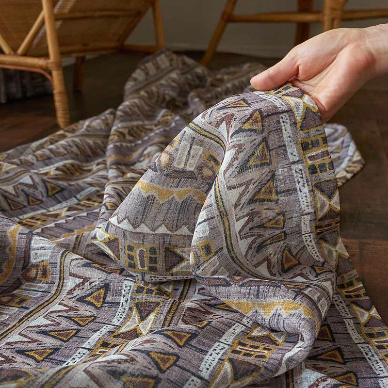 アフリカの伝統布に着想を得てデザインした当店オリジナル。リネンライクのシアー素材に個性あふれる柄をプリントしました。