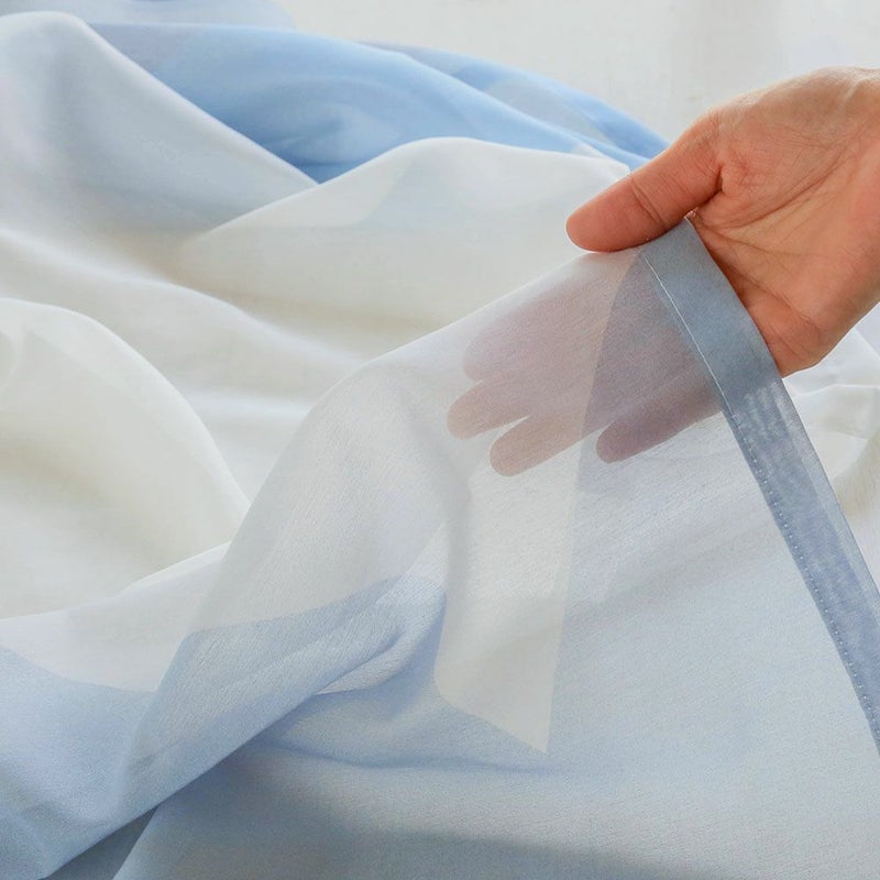 インパクトのあるデザインは好きだけど、ちょっと迷ってしまう...そんなときは、レースカーテンで取り入れてみてはいかがでしょうか。透け感のあるボイルレースは、色柄をふんわりと見せてくれるので、お洒落なデザインはそのままで、インテリアにスッと溶け込んでくれます。まるで空に浮かぶアートを眺めている気分に!