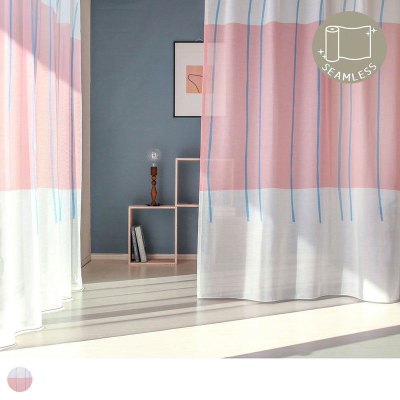 ぬくもりを感じる、柔らかなタッチ。 水平にずーっと続く、ピンクのモチーフ、タテにスッと入るラインが、空間にリズムを作ります。