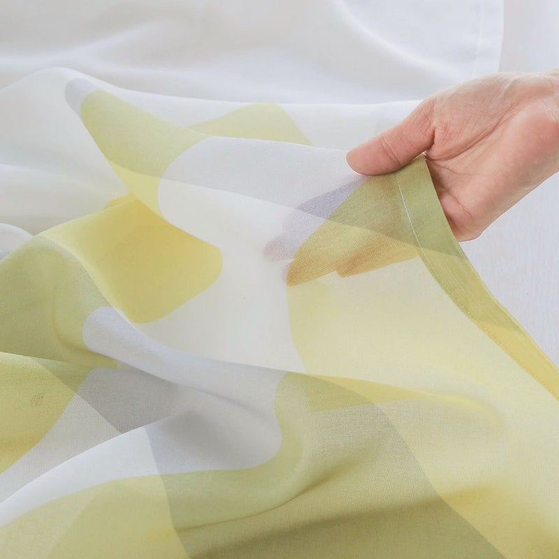 色と柄を美しく映し出す、透け感のあるボイル生地です。透け感はレベル2。レースカーテンの透け感レベルで中間くらいの程よい薄さです。