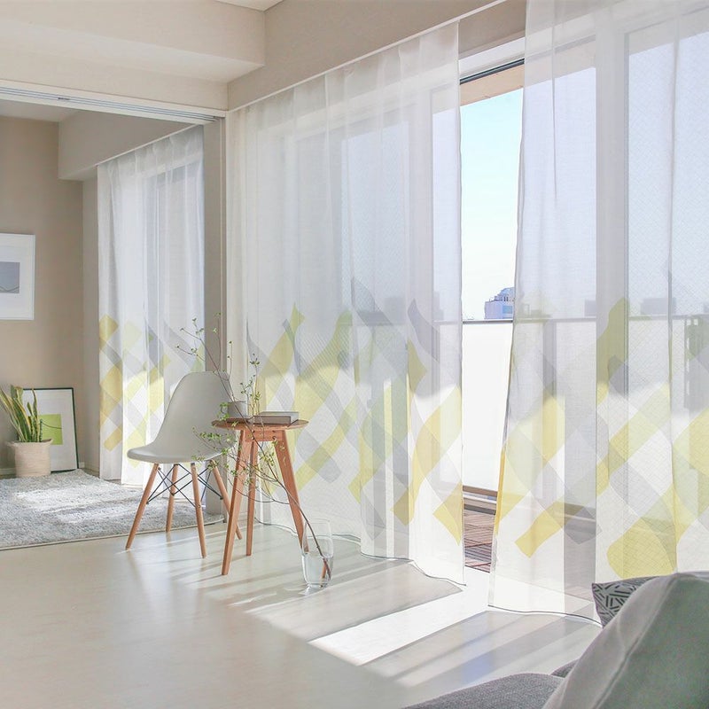 インパクトのあるデザインは好きだけど、ちょっと迷ってしまう...そんなときは、レースカーテンで取り入れてみてはいかがでしょうか。透け感のあるボイルレースは、色柄をふんわりと見せてくれるので、お洒落なデザインはそのままで、インテリアにスッと溶け込んでくれます。まるで空に浮かぶアートを眺めている気分に!