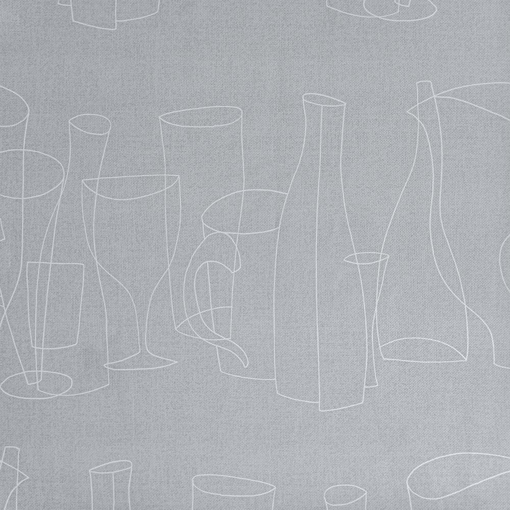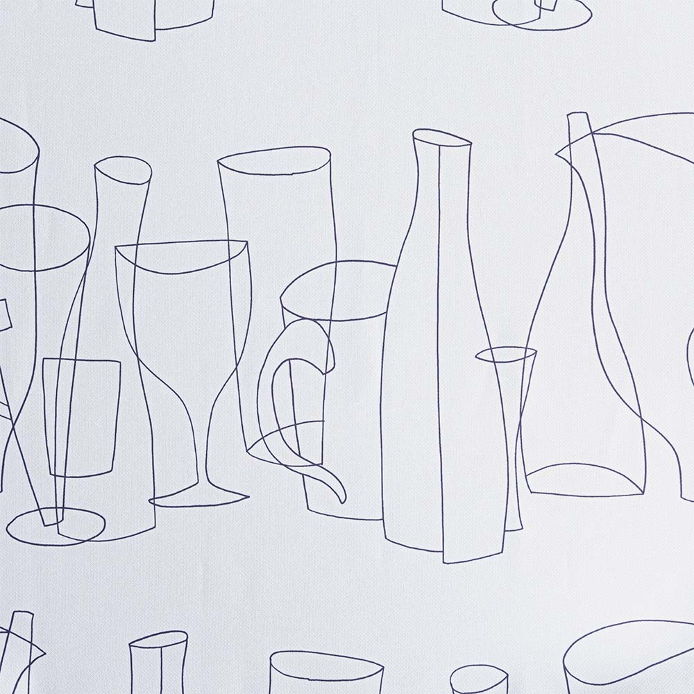 透明なボトルやピッチャーやグラスを描いた、ユニークなラインアート。ポイントは、モチーフが重なり合って大きなボーダー柄に見えるところ。ごちゃごちゃしないですっきりと見えるように、そしてアートな雰囲気を際立たせるようにボーダー状にデザインしています。