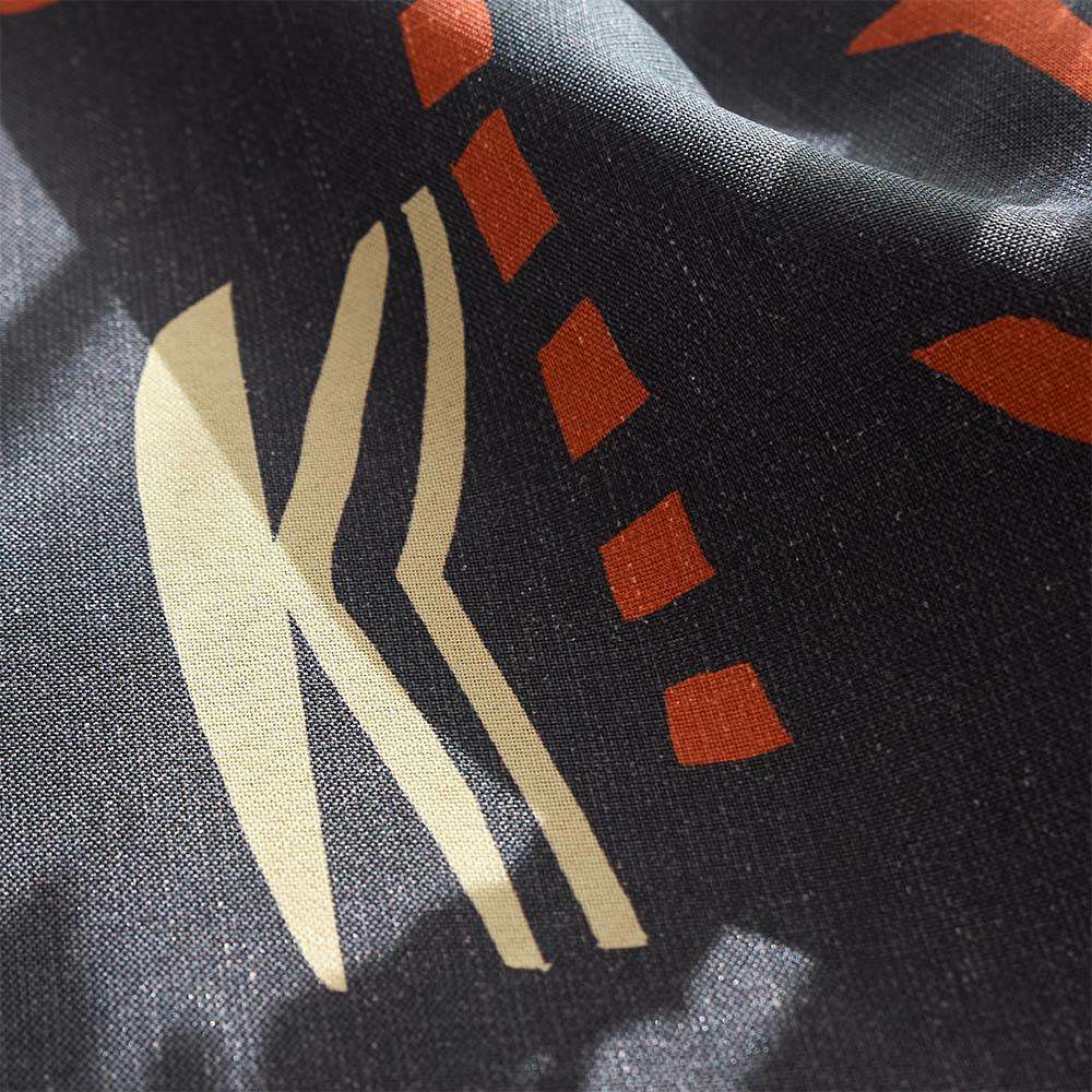 ベースは真っ黒ではなく、ブラックデニムのようなややかすれた墨黒。マットな表面も相まって部屋に馴染みやすいカジュアルな雰囲気に仕上がっています。ぱっと目に飛び込んでくるポップな朱赤が、上品なアクセントに。