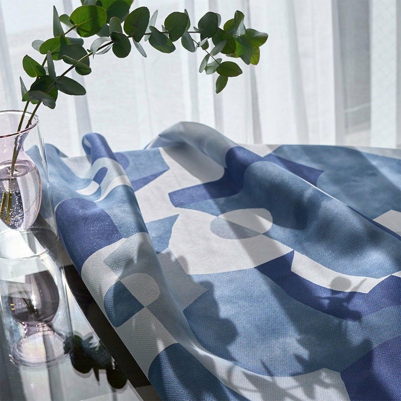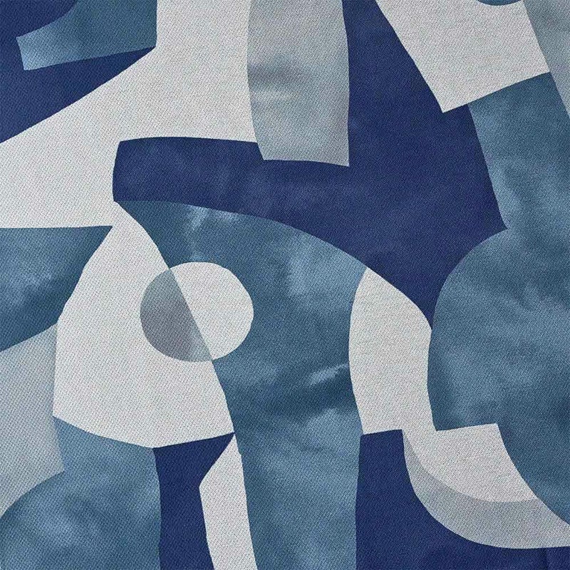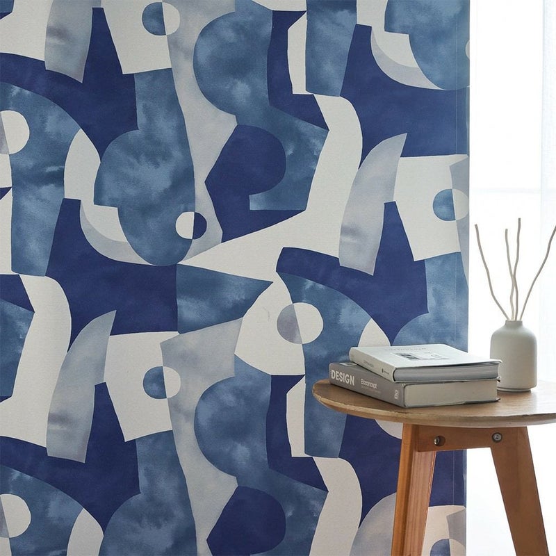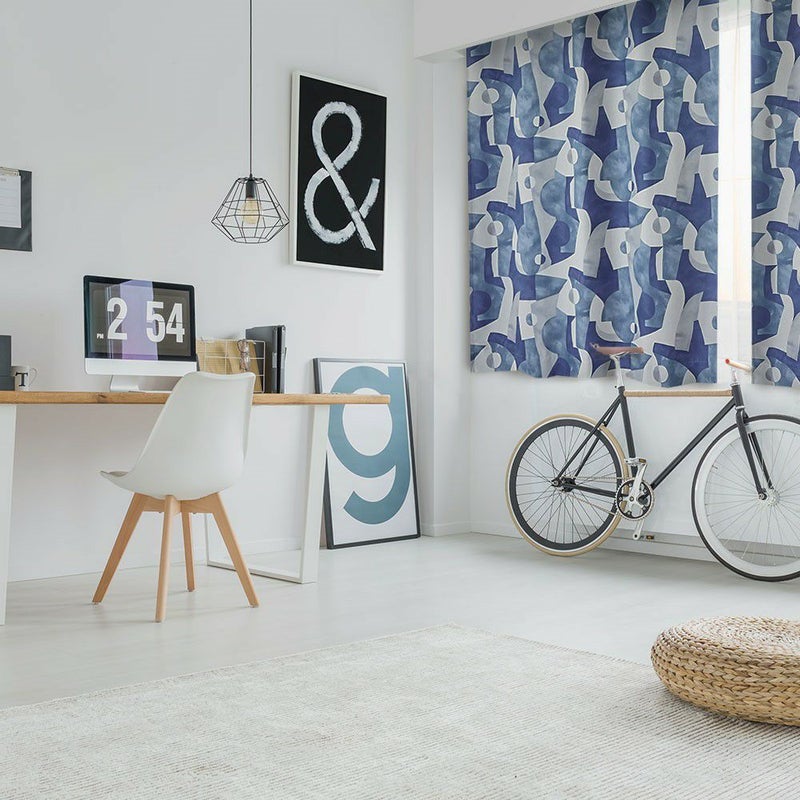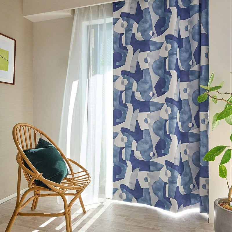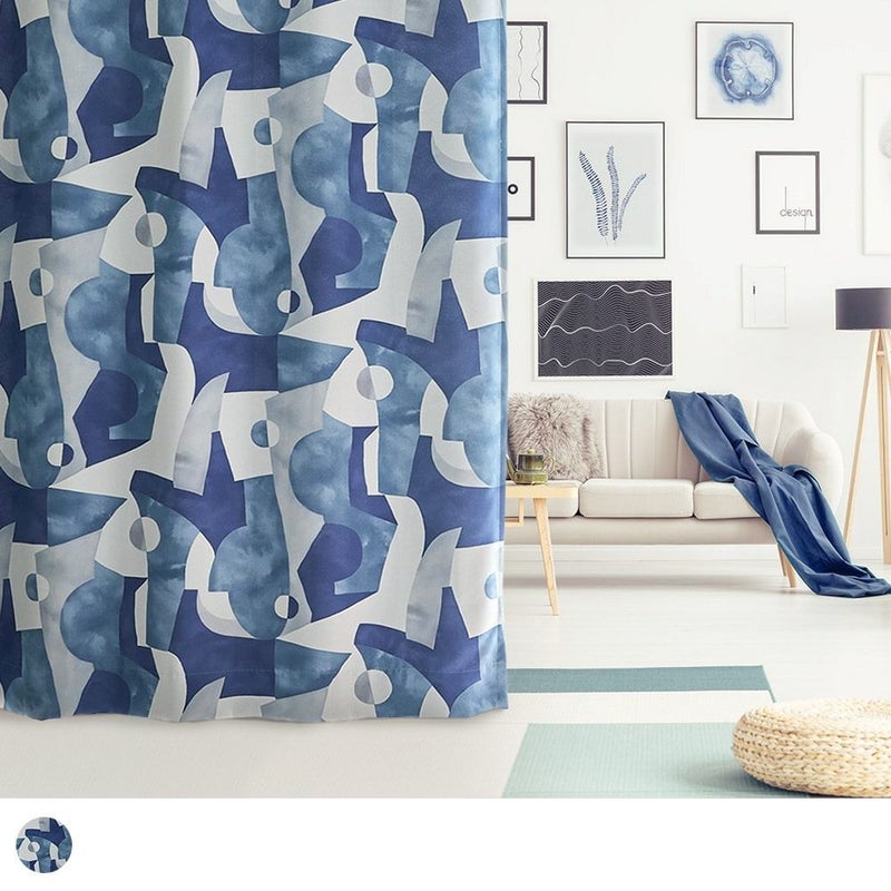 ユニークな抽象柄をブルーだけで描いた、クールなアートカーテンが登場。モダンなアート空間にも北欧インテリアにも映える、アートカーテンです。