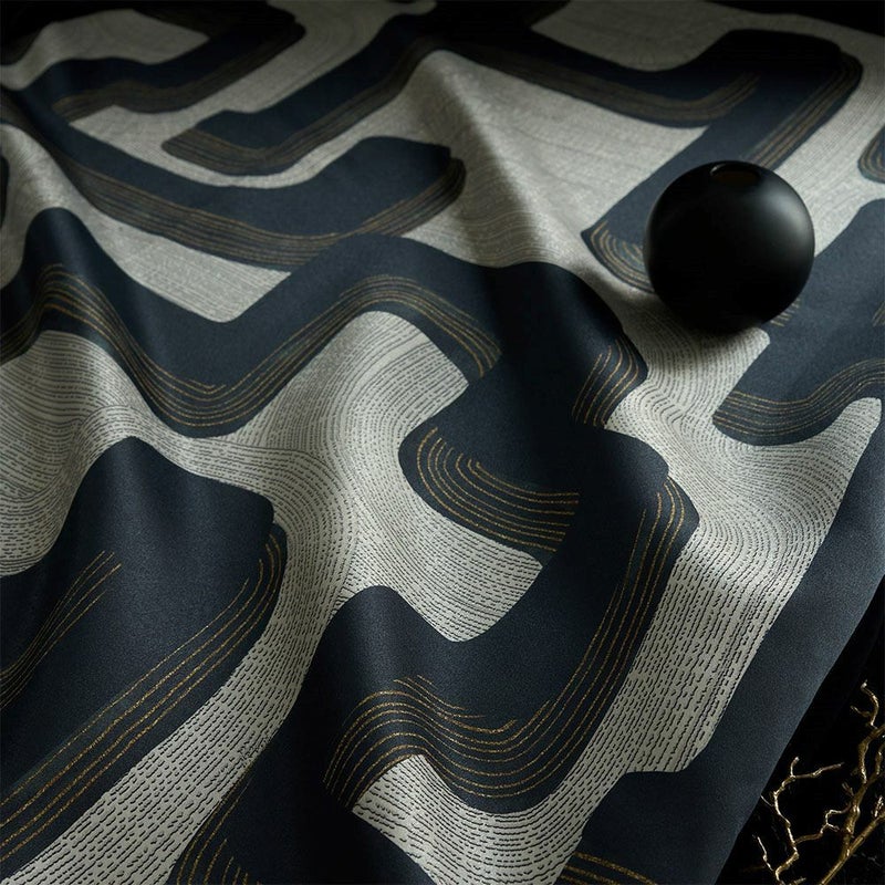 日々の景色に寄り添いながら、暮らしに豊かな彩りを添えます。 ブラックを基調としモダンな抽象柄は、空間に落ち着いた重厚感と上質なニュアンスをプラス。