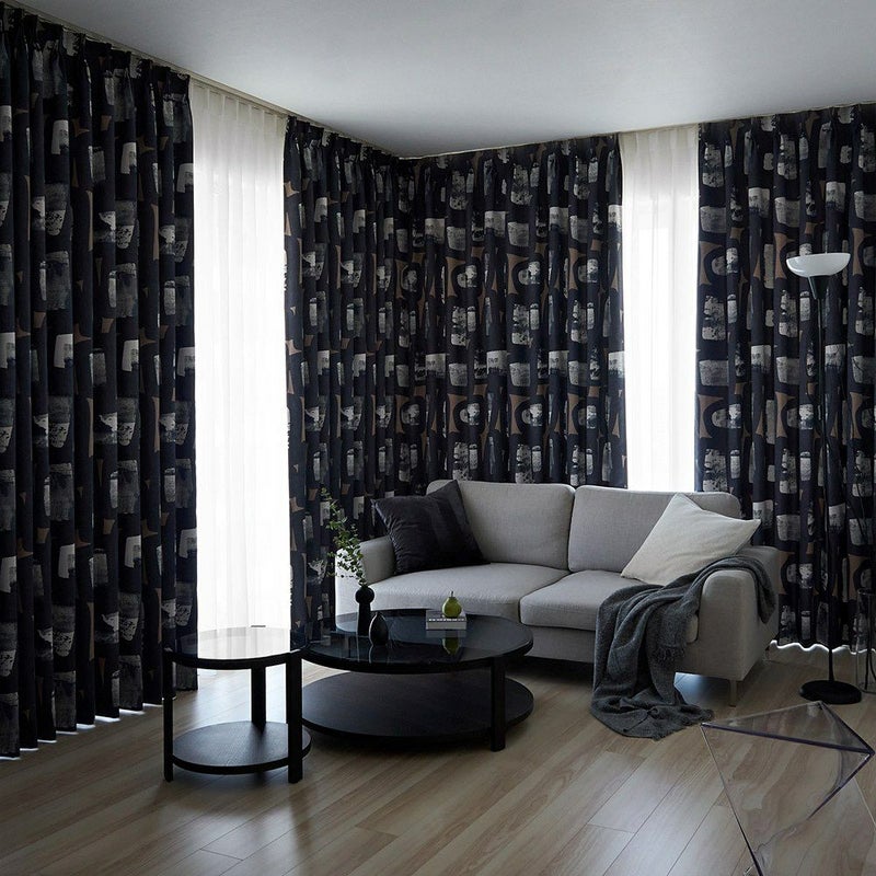 ブラックを基調としたジャパンディ・モダンの抽象柄は、空間に落ち着いた重厚感と上質なニュアンスをプラス。 海外のデザイナーズホテルのような、“静かでリッチな空気”がふわりと広がります。