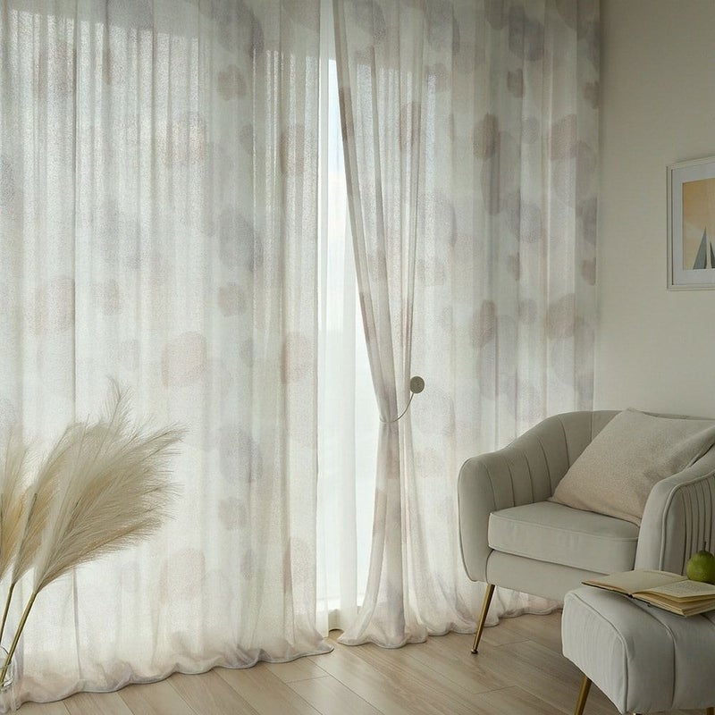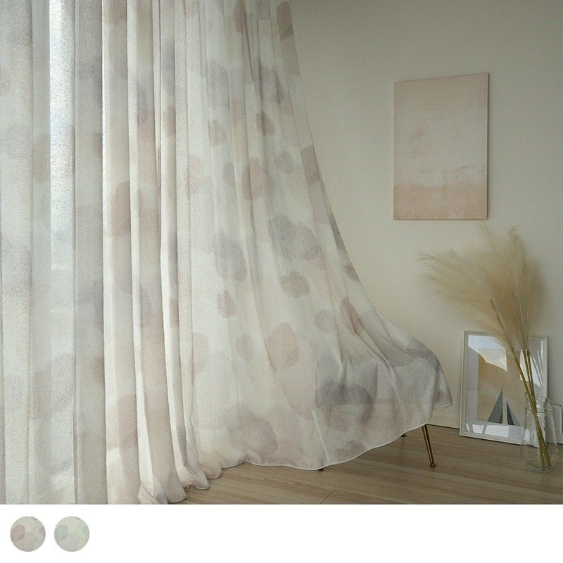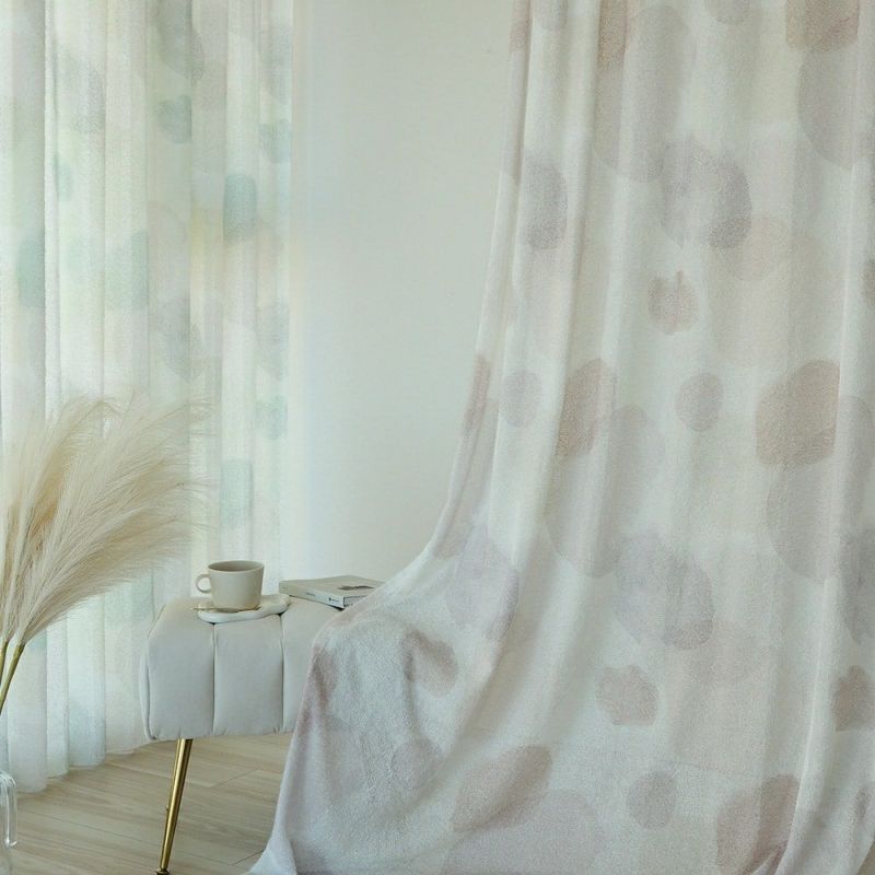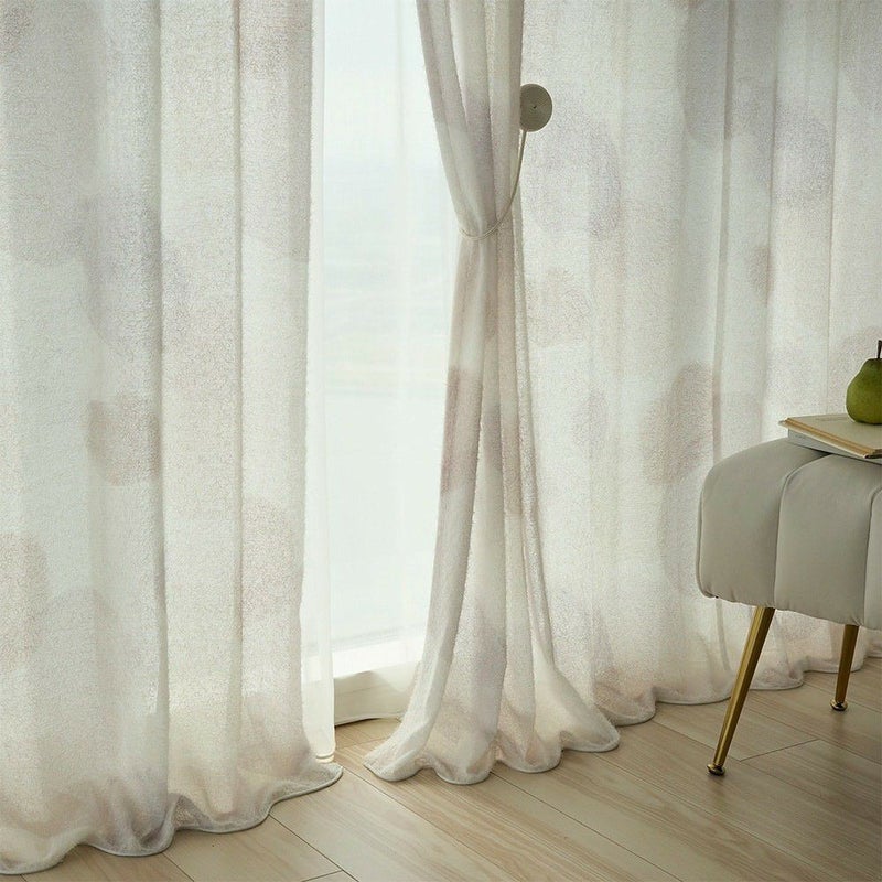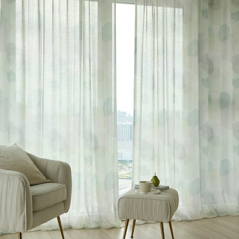 【撮影コーディネート】レースカーテン<ペールレース クリーム><近日公開>ふわふわと浮かぶランダムで自由なドット柄に、モフモフとしたシャギー感のある生地が絶妙にマッチした、アートなカーテン<モフモフシャギードロップ>。