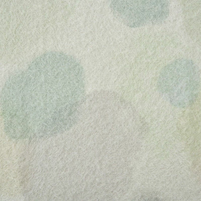 同系色の濃淡で描いたランダムなドット柄は、淡くやさしいニュアンスカラーでかたちづくられています。 その背景に溶け込んでゆくような滲んだタッチが、デザインをよりやさしく柔らかな雰囲気に。