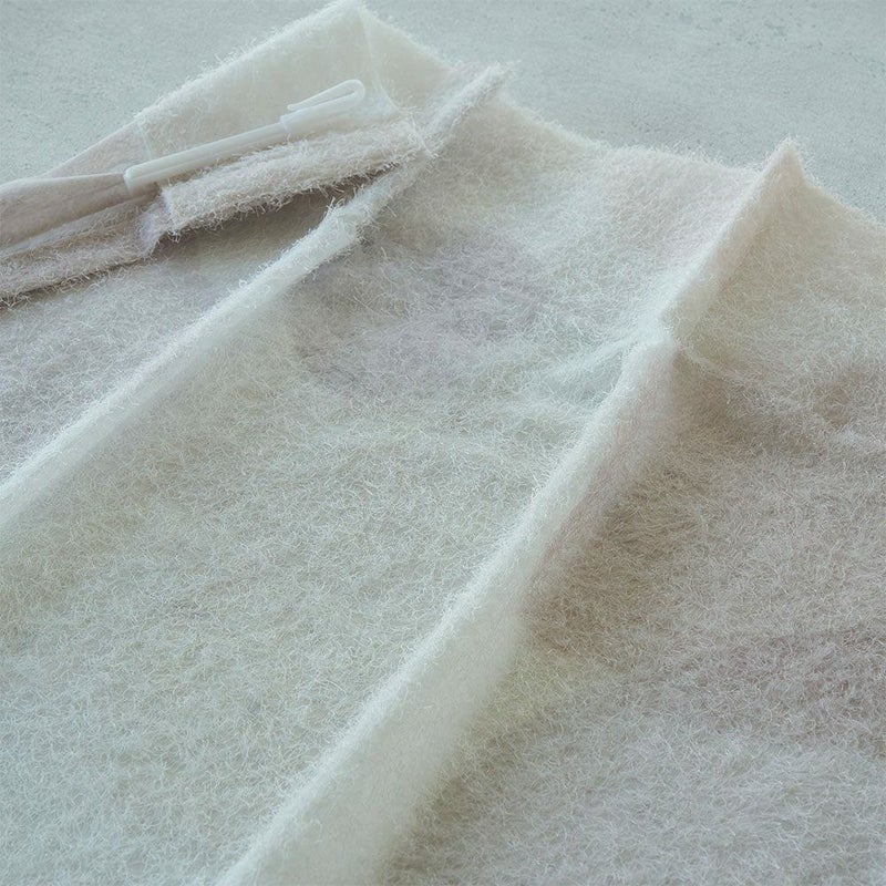 もふもふの起毛があるのは表面だけで、裏面はつるんとした通常のボイルレース生地になっています。だからすっきりとかさばらず、透け感も程よいバランスに。