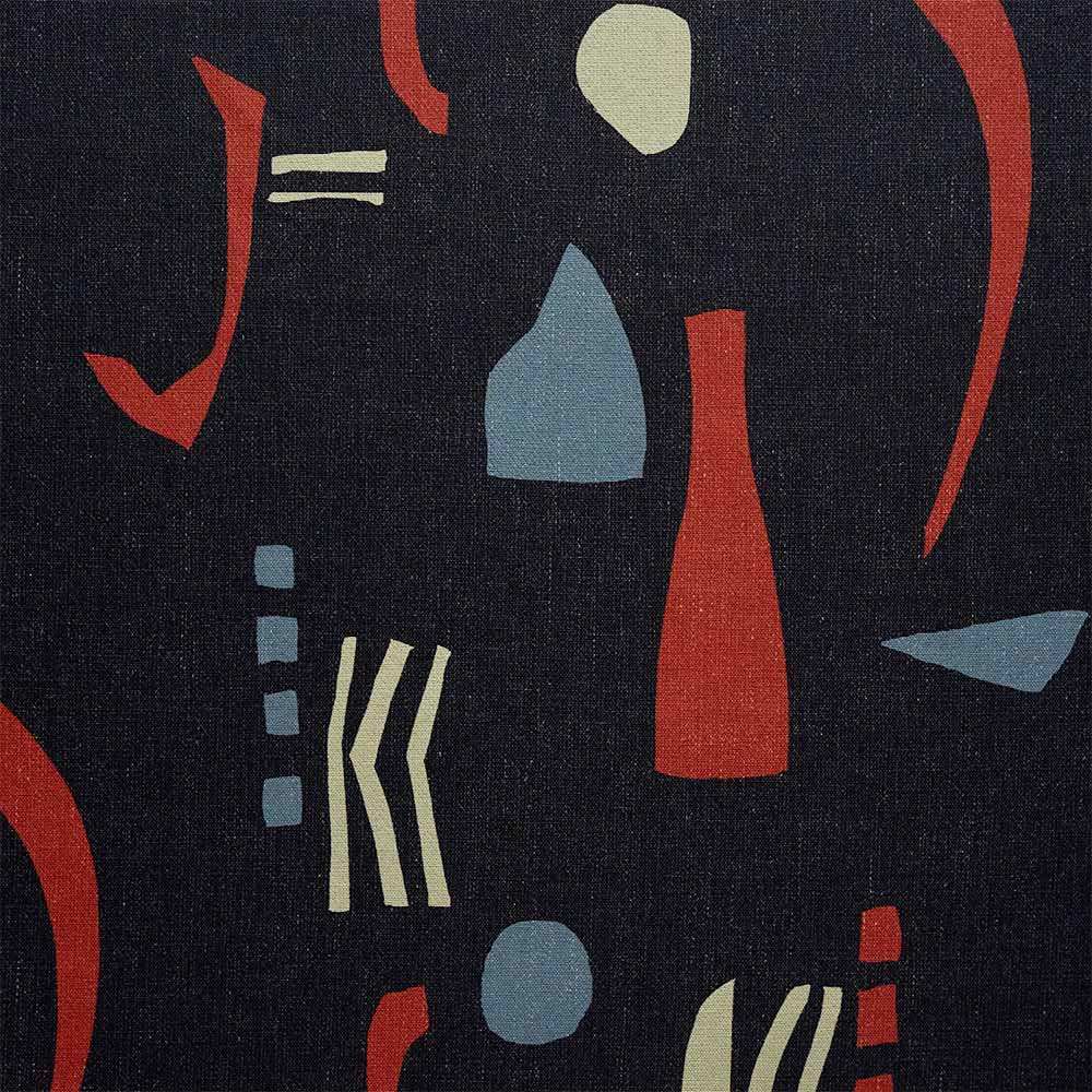 ベースは真っ黒ではなく、ブラックデニムのようなややかすれた墨黒。マットな表面も相まって部屋に馴染みやすいカジュアルな雰囲気に仕上がっています。ぱっと目に飛び込んでくるポップな朱赤が、上品なアクセントに。