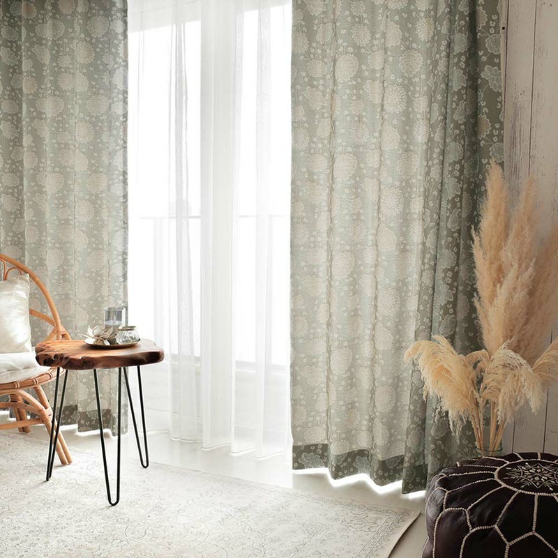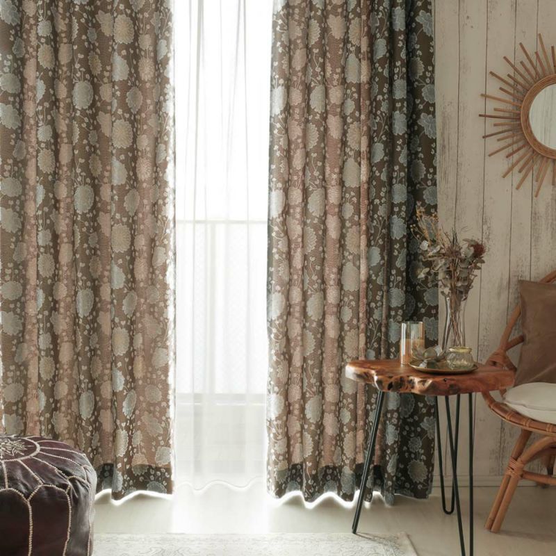 繊細な刺繍のような美しい模様が高級感漂う、贅沢な風合いのカーテン。 このカーテン一枚であれば、アジアンリゾート風に様変わりするのは間違いなし。 家庭の空間が華やかなる一方で、穏やかでリラックスした時間を提供します。お部屋に奥深さとアートのような美しさをプラスしたい方に、このカーテンが特別な雰囲気をお届けします。