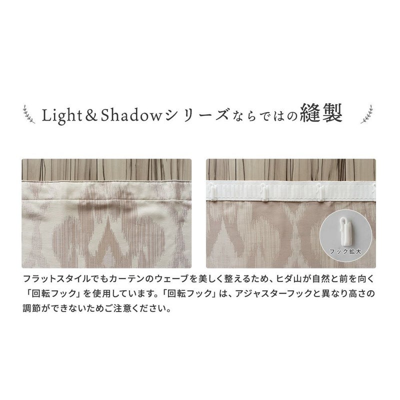 「LIGHT&SHADOW」シリーズより、オリエンタルな異国の雰囲気を醸し出すカーテンをお届けします。大きめな柄を丁寧に織り上げた、上質な生地感が心地いいジャガードカーテン。オーナメント柄を絣(かすり)で表現することで、空間に溶け込む情緒的なデザインに仕上がりました。日差しや照明によって変わる、様々な生地の表情。非遮光カーテンが生み出す、窓辺の陰影を愉しんで。