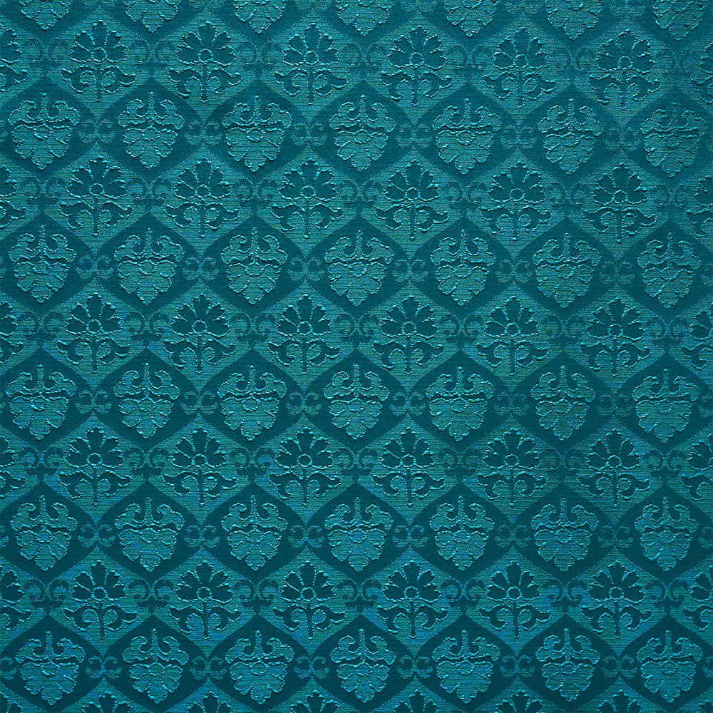素朴な小花をオーナメント柄のように文様化し、幾何学的なパターンで表現したデザイン。ジャガード織りによる立体的な陰影が艶を纏い、豊かな表情にうっとりするほど。国内有名インテリアメーカー「スミノエ」による、洗練された高品質なテキスタイル。