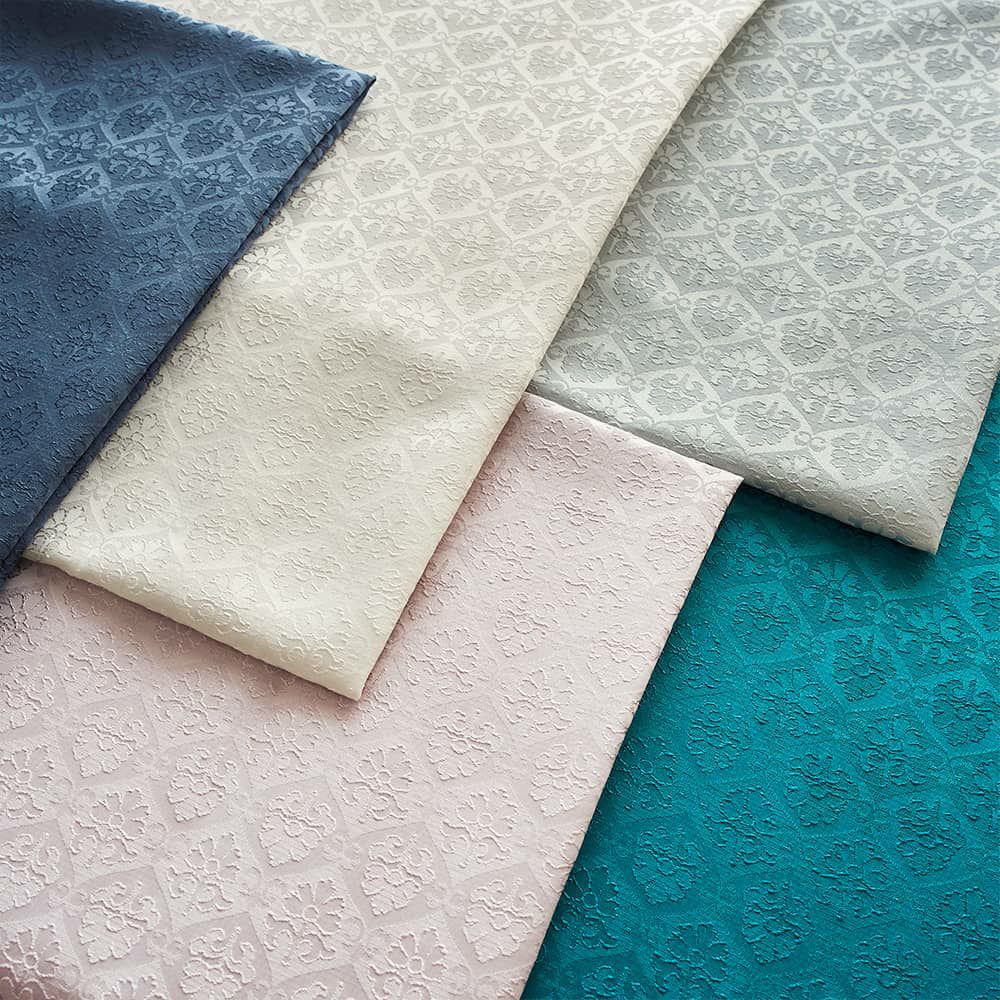 美しく織り上げられた、上質なジャガード生地。糸と糸が奏でる凹凸が、滑らかな質感を生み出し、極上のさわり心地を叶えます。毎日開け閉めするものだからこそ、思わず触れたくなるような一枚を。