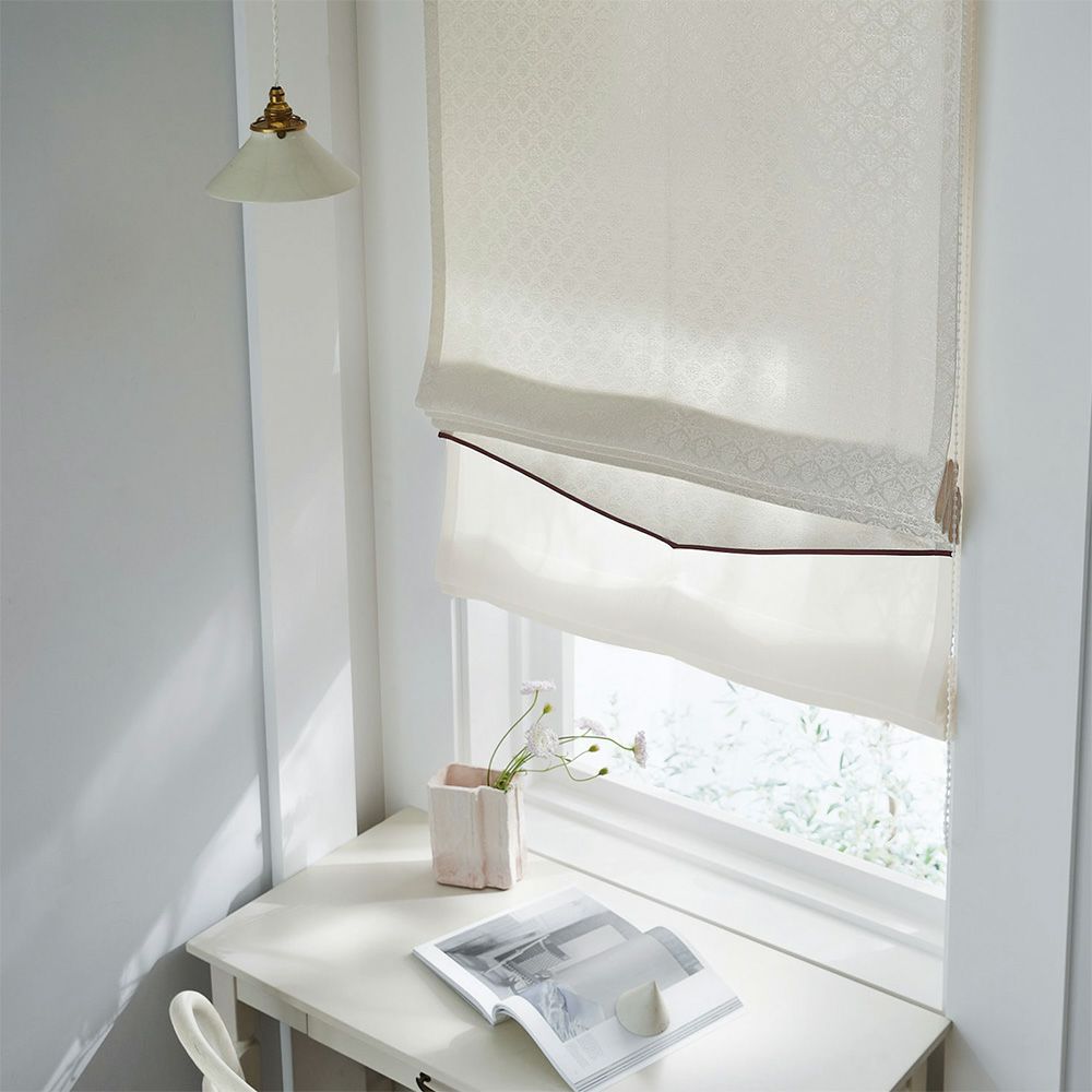 カーテンと同じ生地でシェードを作れば、統一感のあるおしゃれな空間に。ヒダがない分、スッキリとした窓周りを演出します。窓の下にソファや棚を置いてスペースを活かす場合にもおすすめ。こちらのシェードも1cm単位でサイズオーダーが可能です。