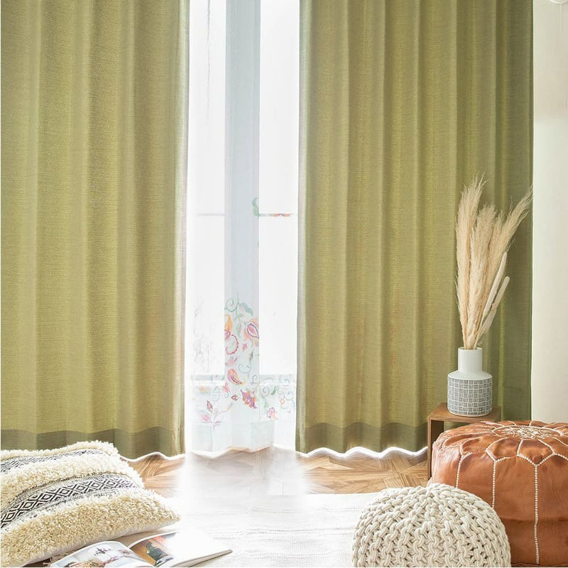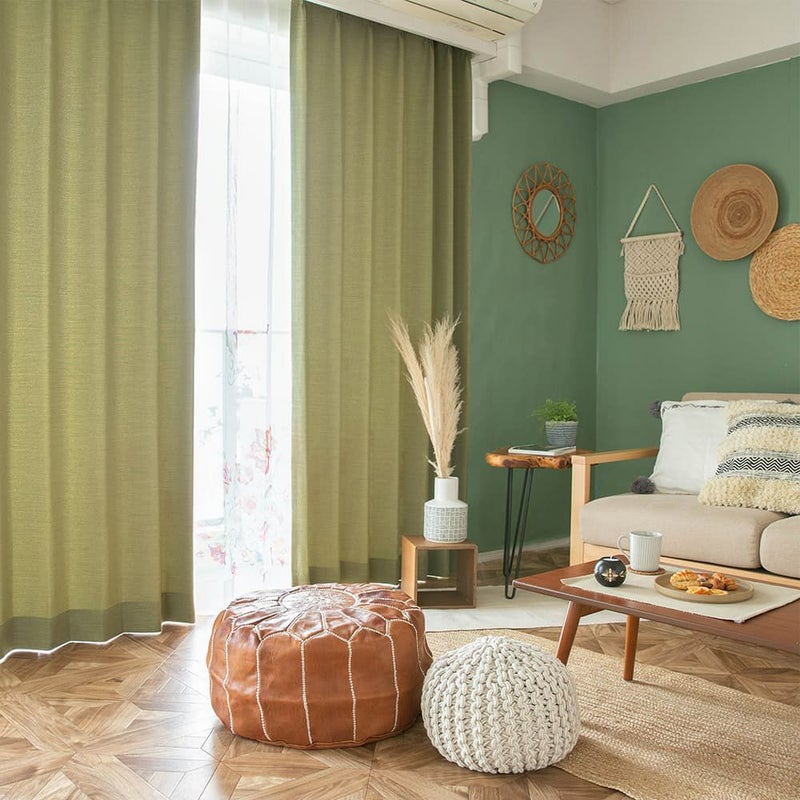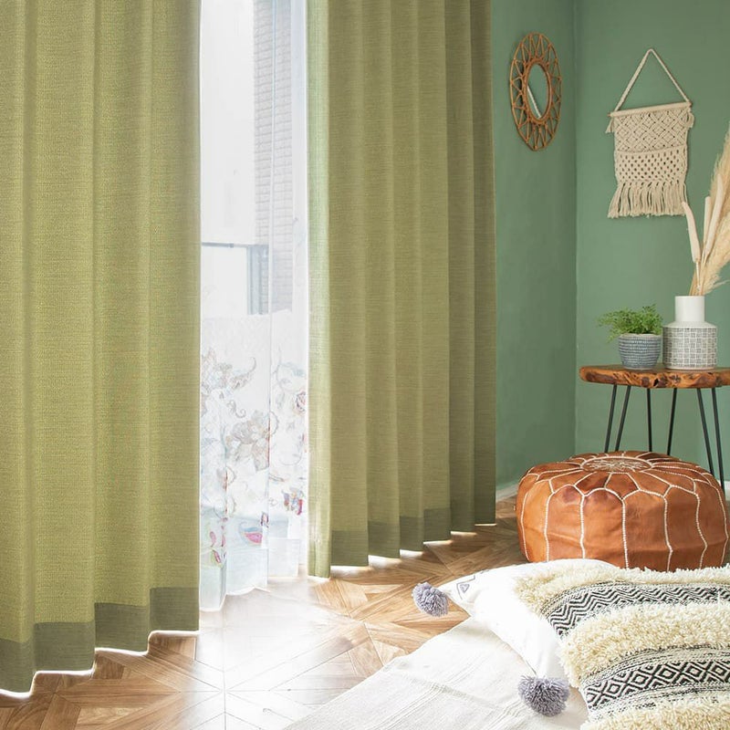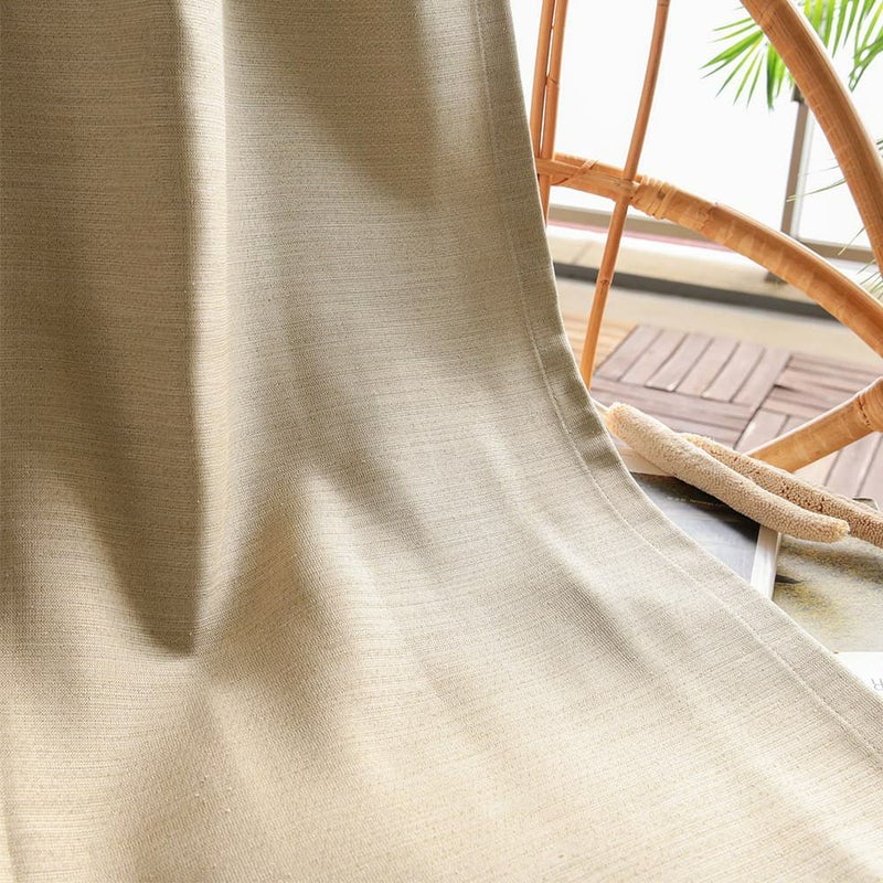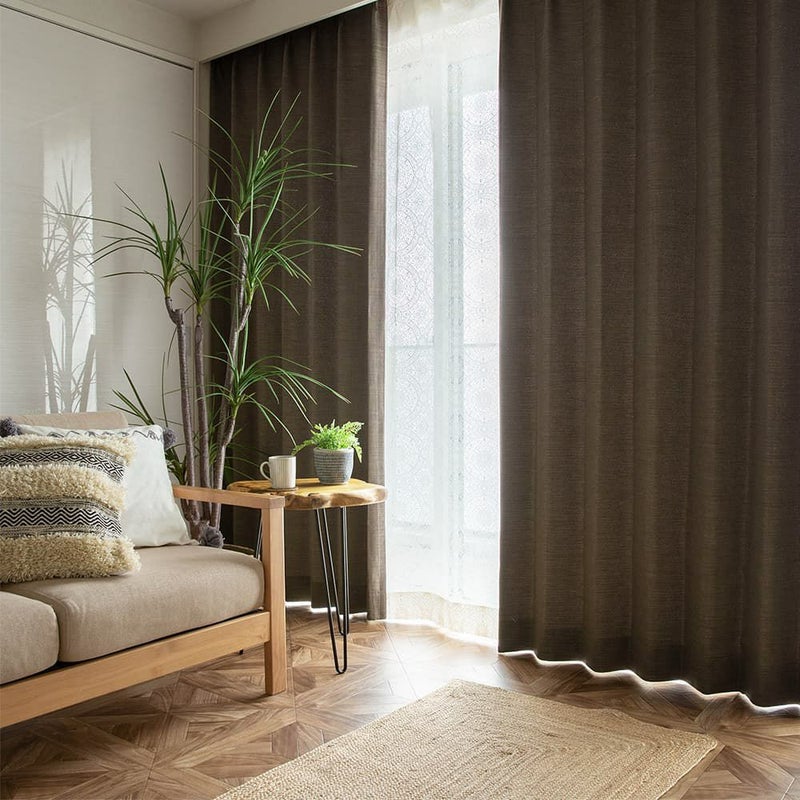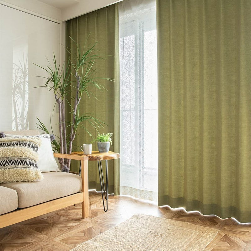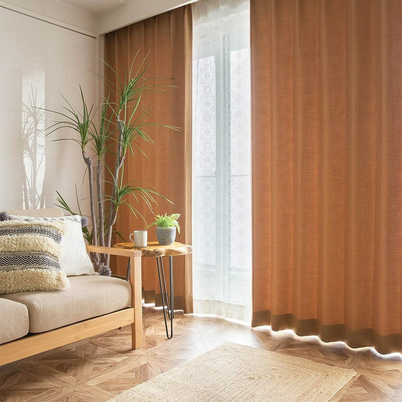 無地は無地でも生地感にこだわった、味わいのある遮光カーテン。開放的でナチュラルな色合いと、味わいある生地の表情が、あか抜けアジアンスタイルに馴染みます。