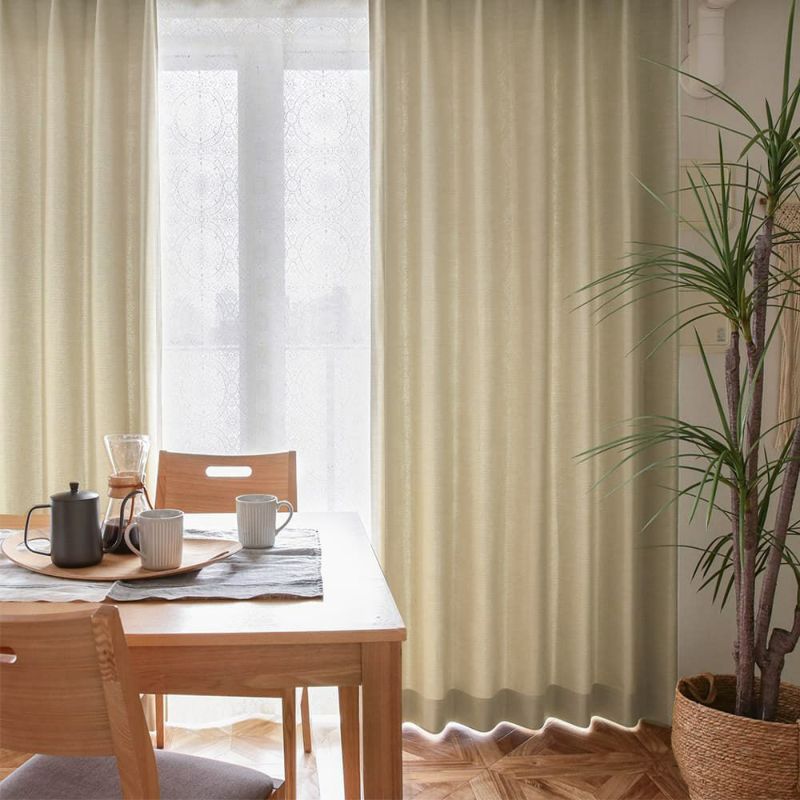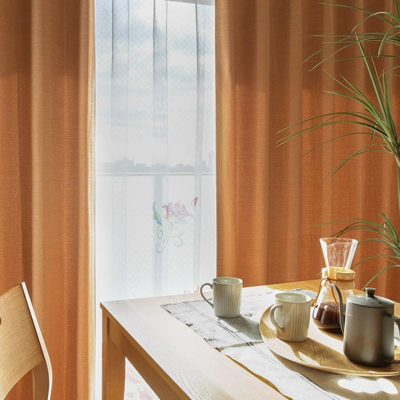 朝、陽がのぼるとお部屋の中もほんのり明るくなる、2級遮光カーテンです。外の陽の動きをほどよく感じられる窓辺は、生活リズムを自然と整え、充実した日々へと導いてくれるでしょう。