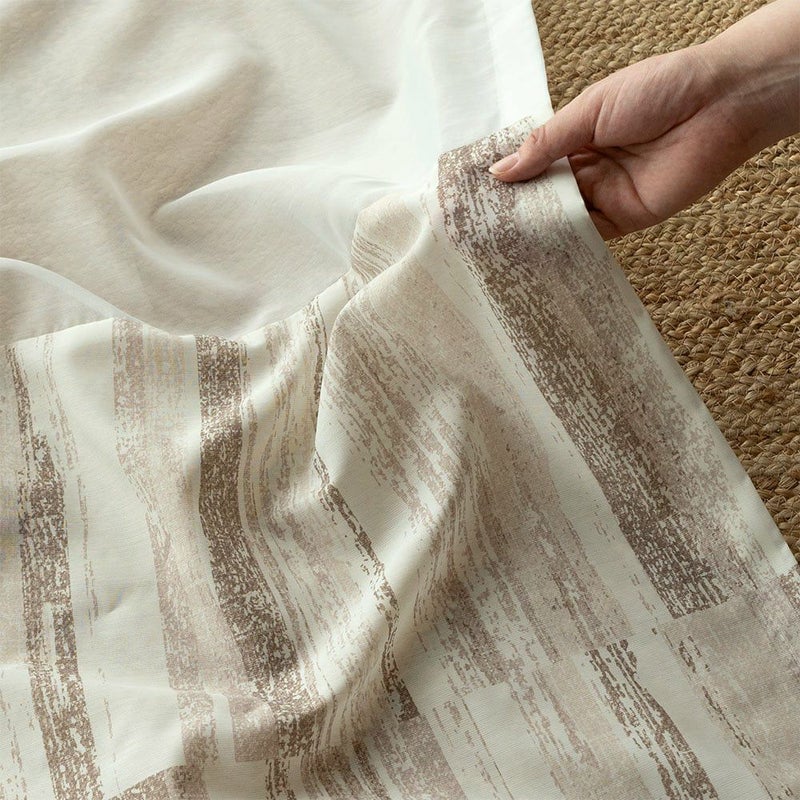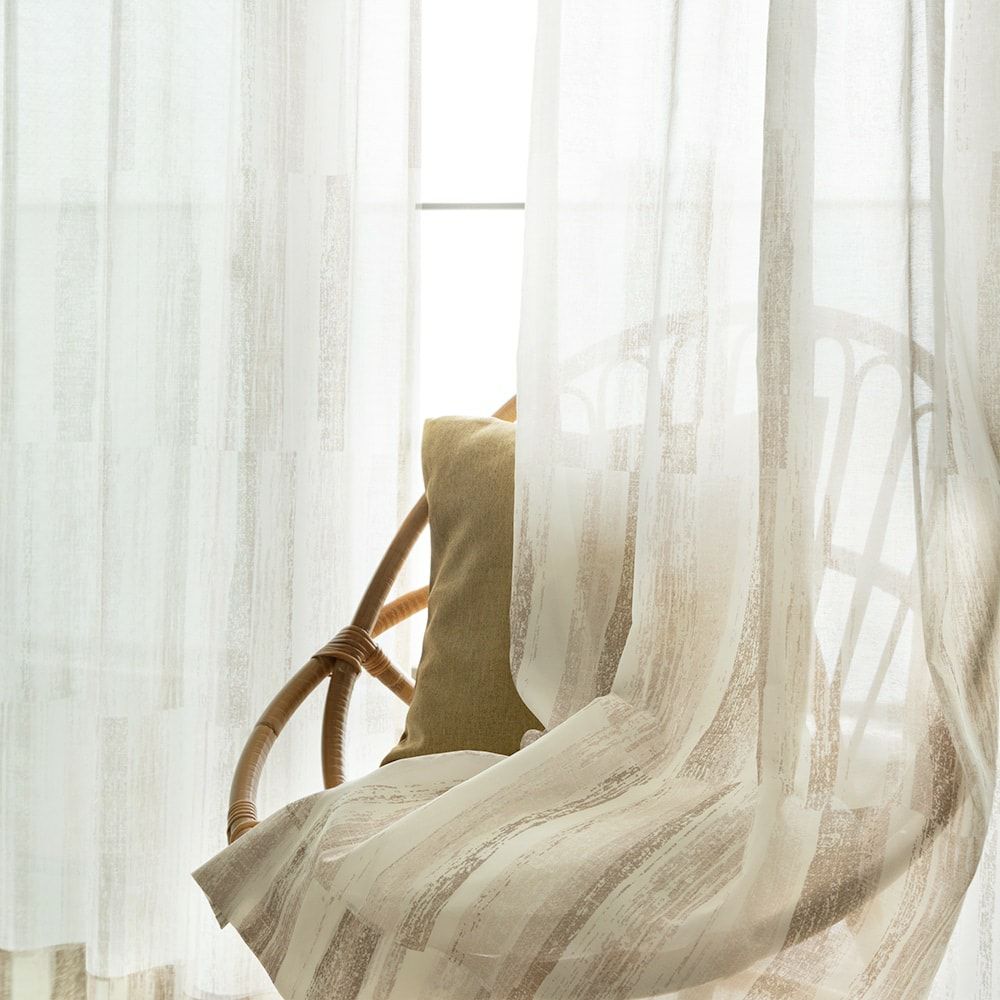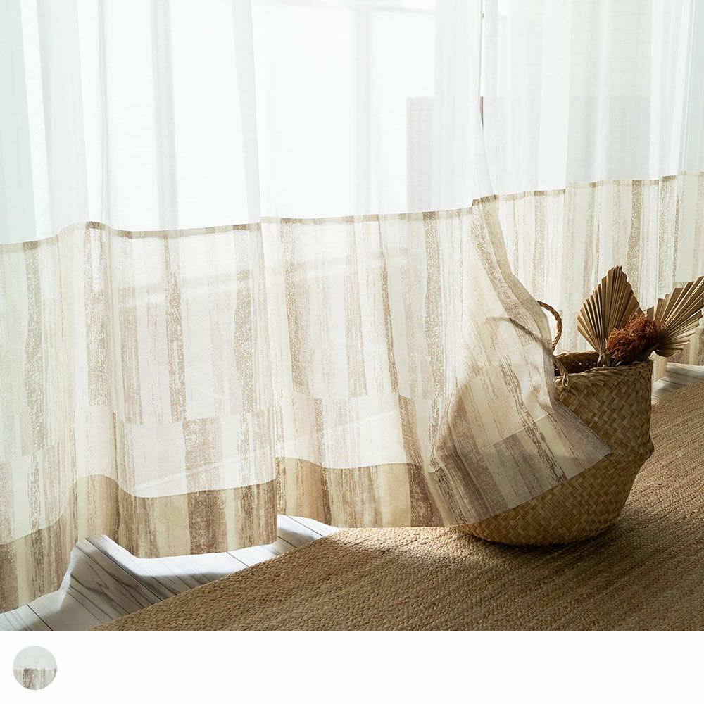 インクジェットプリントで繊細に表現した、ナチュラルウッドの素朴な質感。掠れたテクスチャーと、木の破片が寄せ集まったような、自然なデザインがこのレースカーテンの魅力です。インテリアにそっと溶け込む、ウッド調の窓辺を楽しんで。
