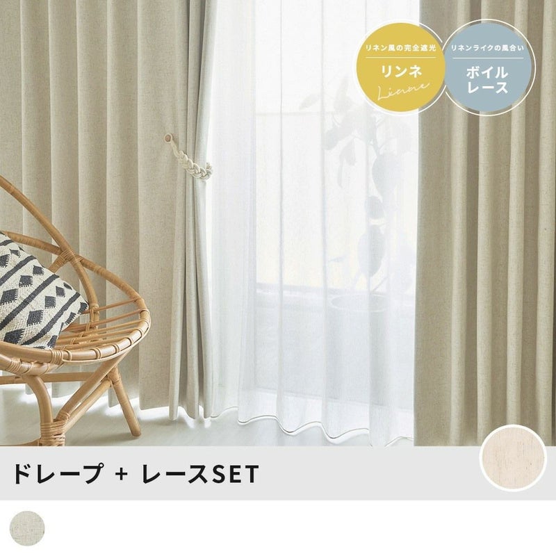 セットのレース<ラン>もリネンを思わせるナチュラルで素朴な雰囲気を楽しめるレースカーテン。ドレープもレースもナチュラルな雰囲気にしたい!そんなこだわりのある方にぴったりのコーディネートです。 -
