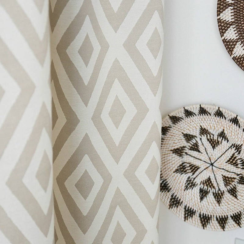 一見派手に見える幾何学模様も、窓に欠ければ部屋に溶け込む不思議な魅力がある。大きな窓にはより一層おすすめの1枚です。