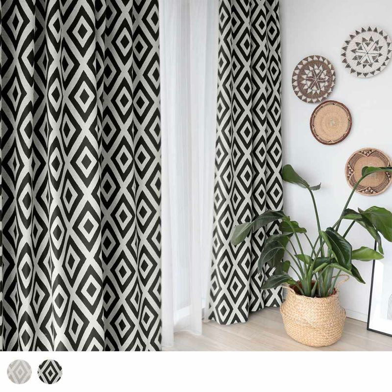 柄は印象的な感じでナチュラルな質感のカーテンは植物や木目など自然のものとの相性が抜群。 観葉植物などをお部屋に置きたくなるBOHOスタイルにピッタリ!